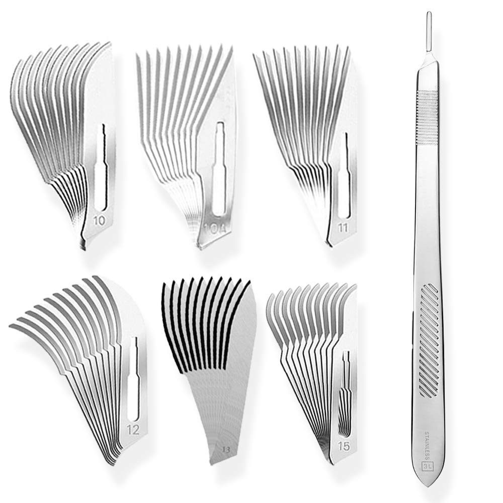 • Dieses Bundle besteht aus 1 x Skalpell-Halter mit 21 cm langem Griff - Skalpellgriff Fig. 3 und je 10 passenden Klingen Figur 10, 10A, 11, 12, 13 und 15