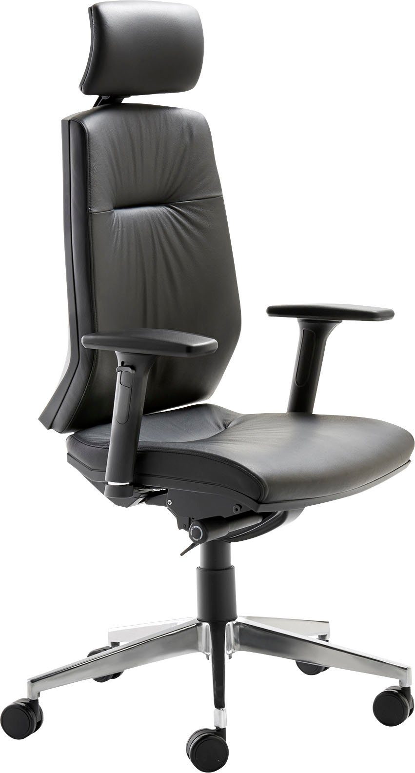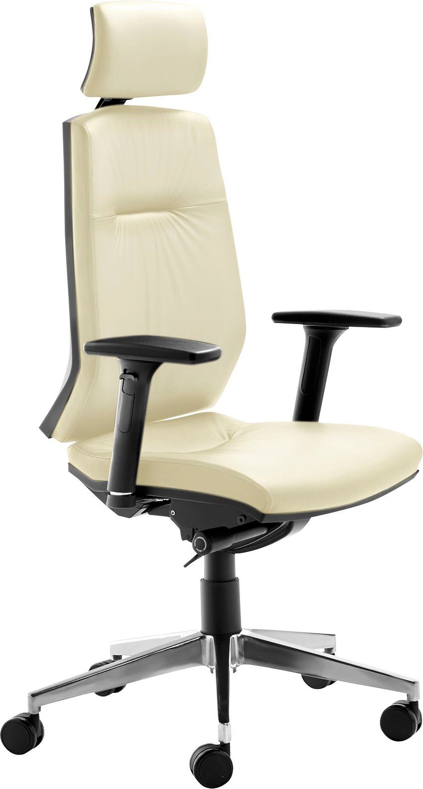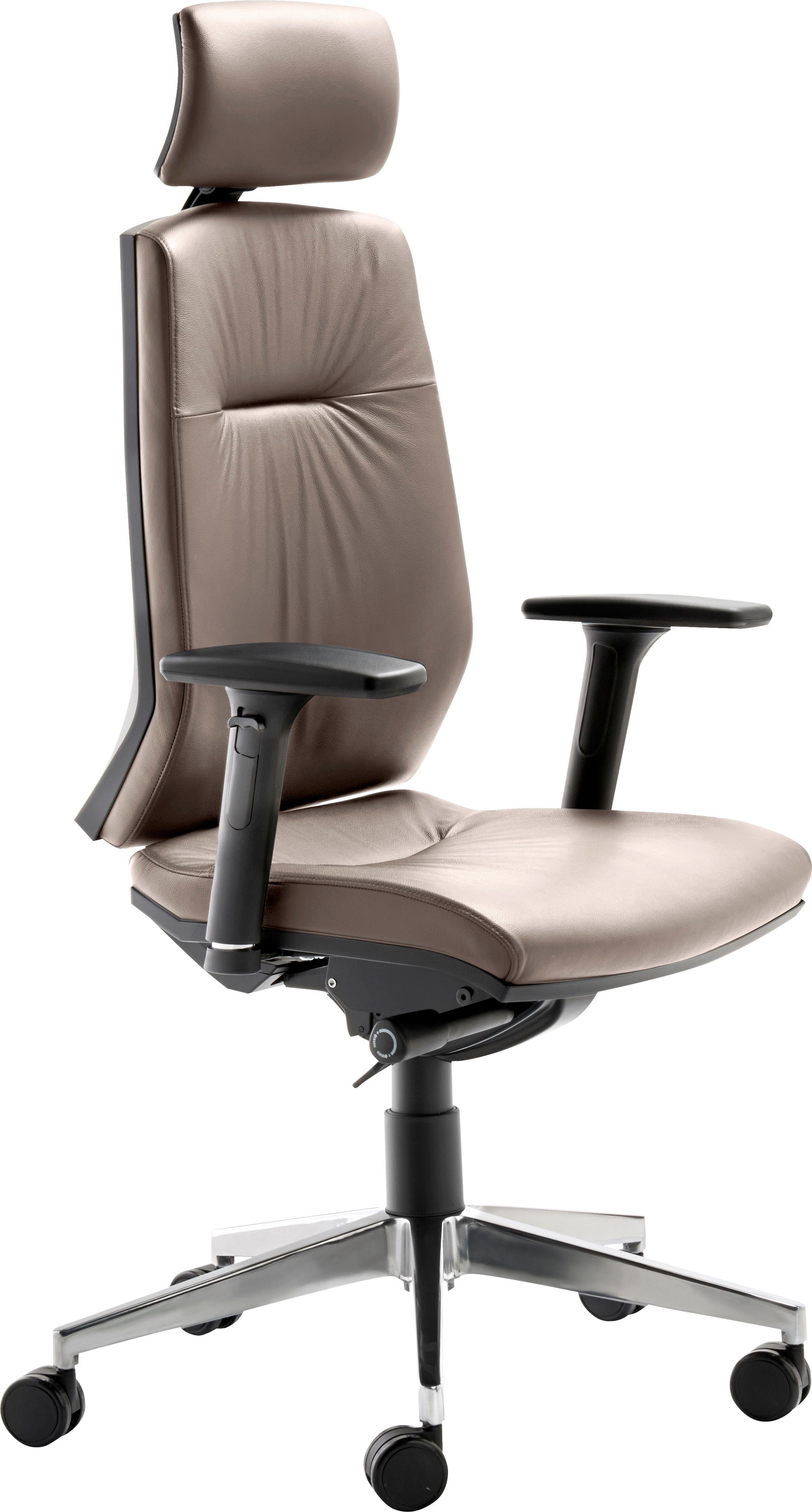 Ausführung | Alu-Fußkreuz poliert Sitz, Rücken und Kopfstütze gepolstert Teppichbodenrollen groß mit Armlehnen |