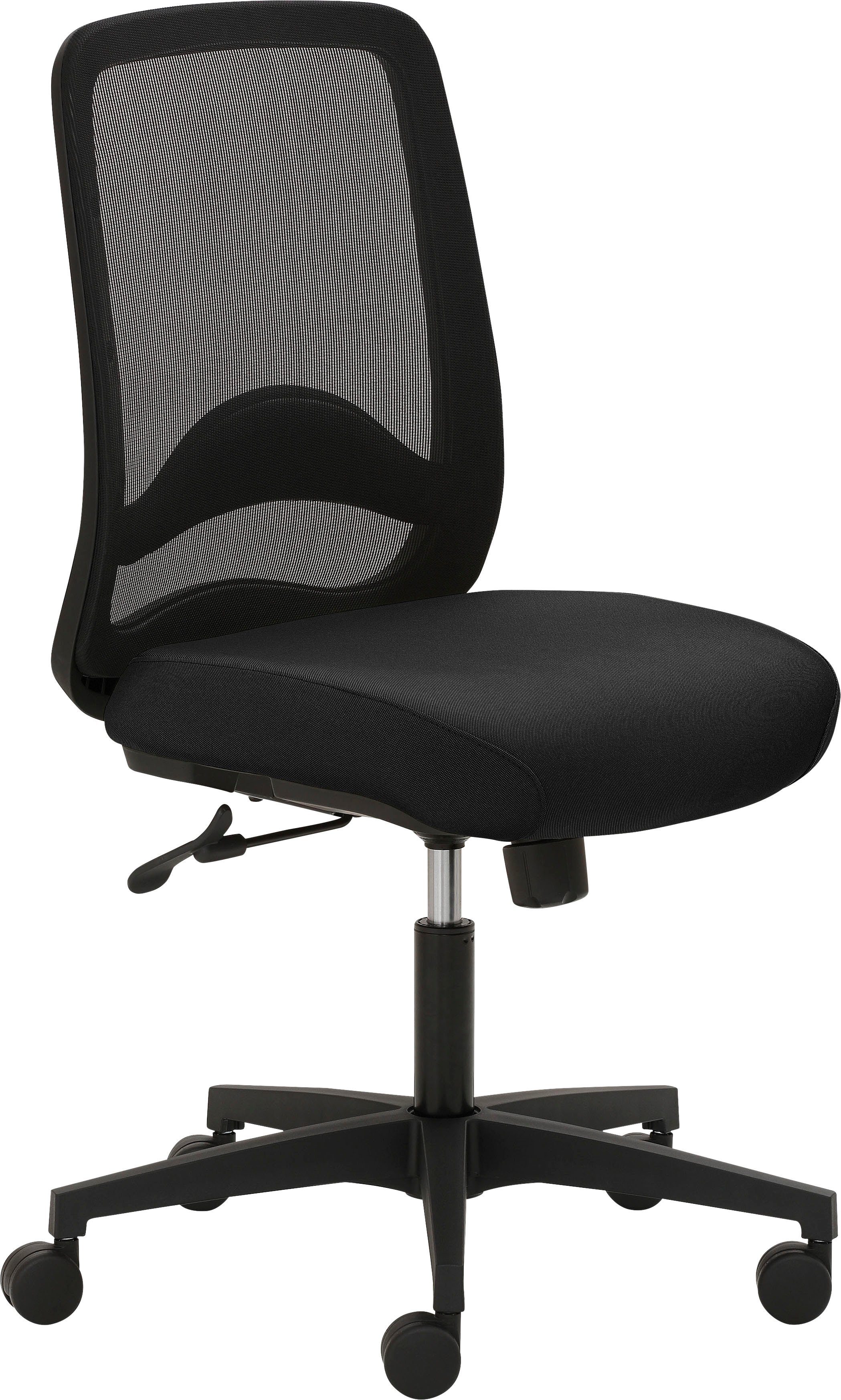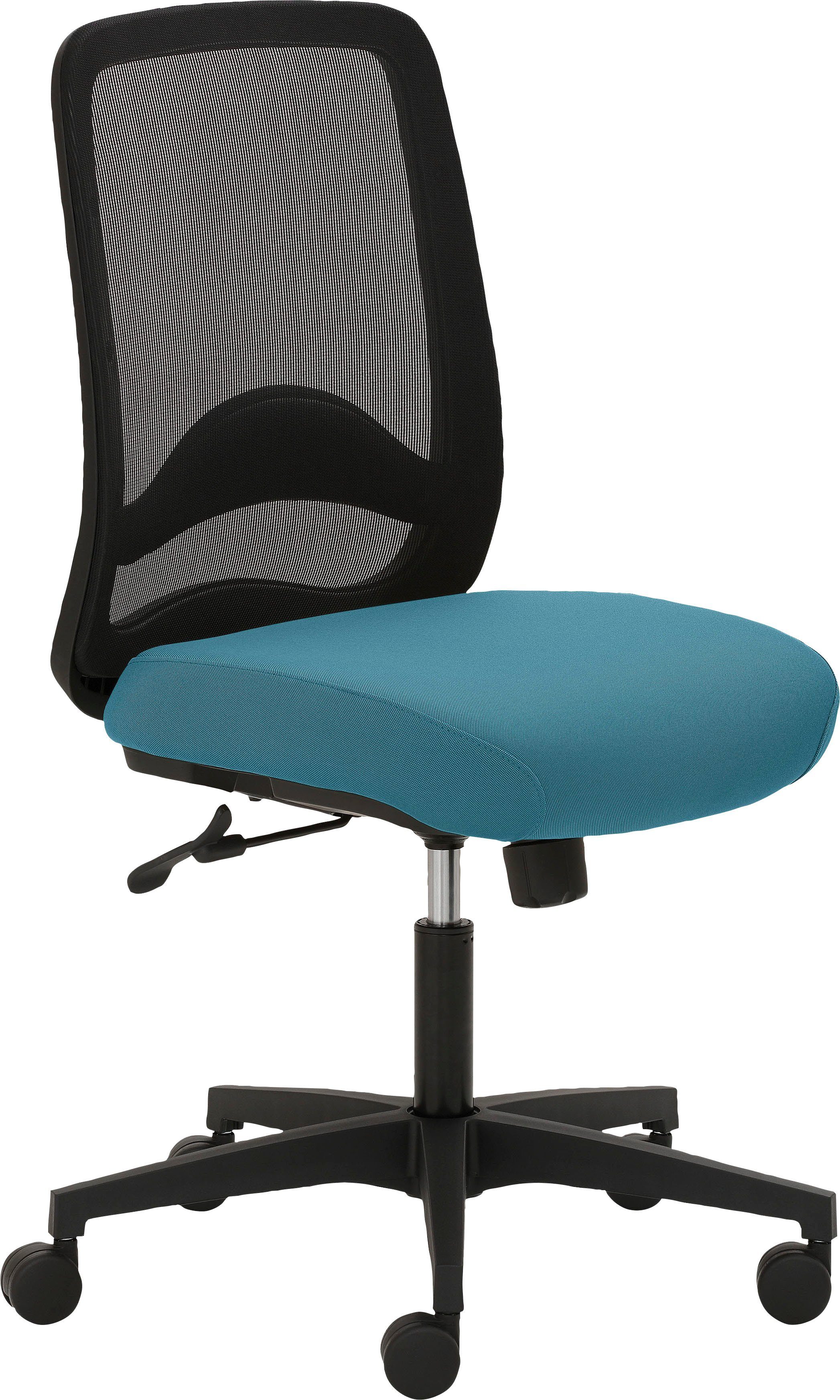Ausführung | Kunststoff-Fußkreuz schwarz Synchronmechanik mit individueller Gewichtseinstellung Teppichbodenrollen niedriger Netzrücken |