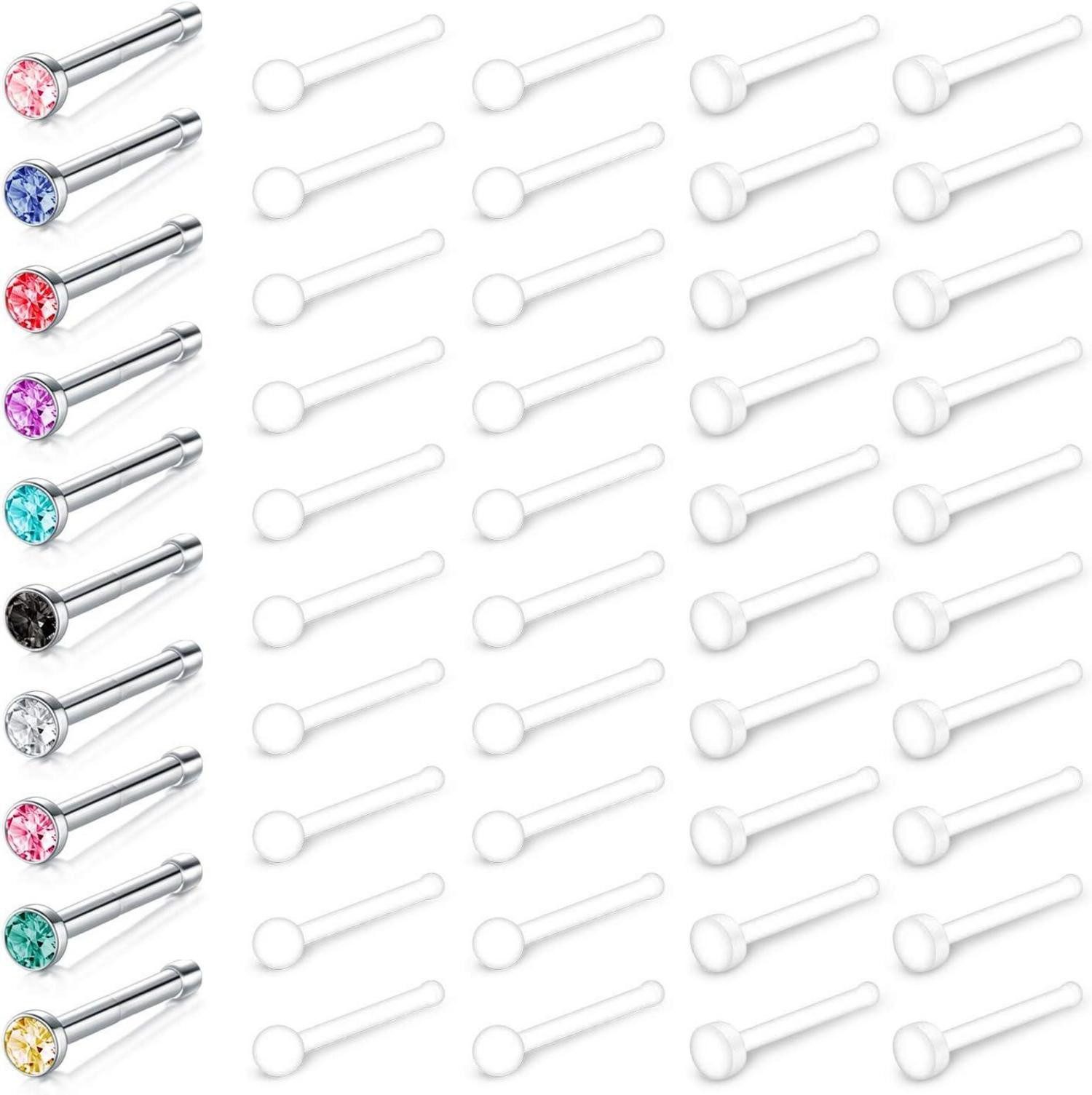 Guter Preis, gute Qualität. Breite Anwendungen: diese Nasenringe eignen sich als Halter für Interviews oder Arbeit, bei der Gesichtspiercings nicht erlaubt sind, sie sind bequem zu tragen. Nasenstecker: Stabstärke: 1,0 MM/18G; Stäblänge: 7 MM; Ende Größe: 2,0 MM. Hergestellt aus hochwertigem flexiblen Kunststoff und Chirurgenstahl 316L. Sicherheitsmaterial, unbedenklich für die menschliche Haut, absolut eine gesunde Wahl. Sehr bequem und verhindert Hautirritationen, auch bei langem Tragen. Dieses Set enthält 40 Stück klare PTFE Nasenringe Retainer, ideal für die Arbeit, Chirurgie, MRI und mehr. Zusätzlich sind 10 Stück Edelstahl CZ Nasenstecker enthalten, um Ihnen mehr Auswahl zu bieten. Ein exquisites Set zu einem angemessenen Preis, verpackt in einem Samtbeutel. Der Piercingschmuck wird in China hergestellt und besteht aus hochwertigem Edelstahl und Kunststoff.
