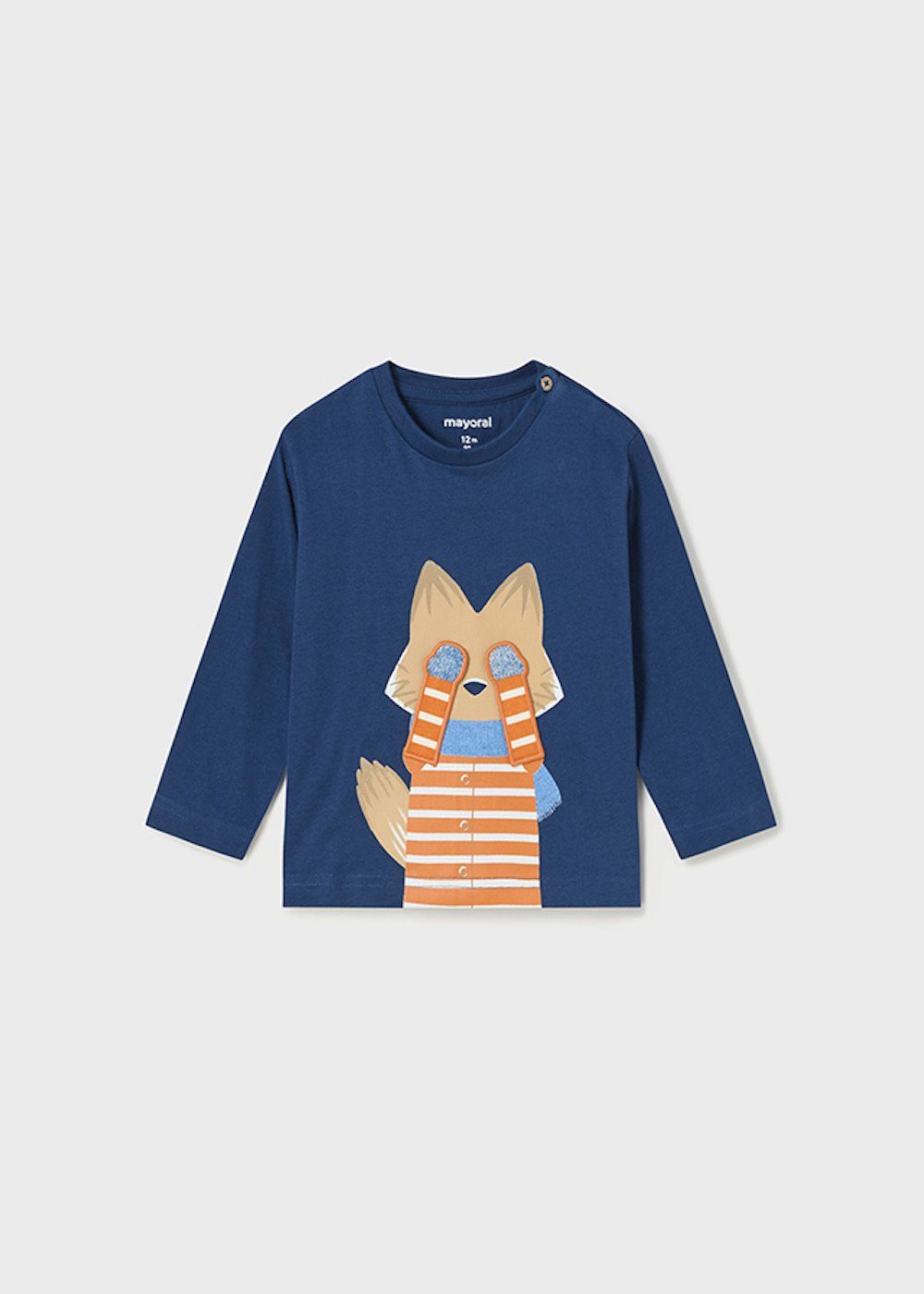 Das niedliche Langarmshirt FUCHS in Indigo Blau von Mayoral – ein unverzichtbares Kleidungsstück. Mit seinem lockeren Schnitt und dem weichen Baumwollstoff bietet dieses Shirt den Kleinen ein bequemes und bewegungsfreundliches Tragegefühl für unbeschwerte Stunden voller Spiel und Spaß. Das Highlight dieses einzigartigen Langarmshirts ist das drollige Motiv auf der Vorderseite. Ein entzückender Fuchs, der mit beweglichen Armen ausgestattet ist und die Augen auf und zu schließen kann. Eine bezaubernde und interaktive Applikation, die Kindern das Lächeln ins Gesicht zaubert und ihre Fantasie anregt. Das Langarmshirt FUCHS besteht zu 100 % aus Baumwolle, was es besonders hautfreundlich und angenehm zu tragen macht. Seine hochwertige Verarbeitung und das liebevoll gestaltete Design machen es zum perfekten Begleiter für jeden Tag.