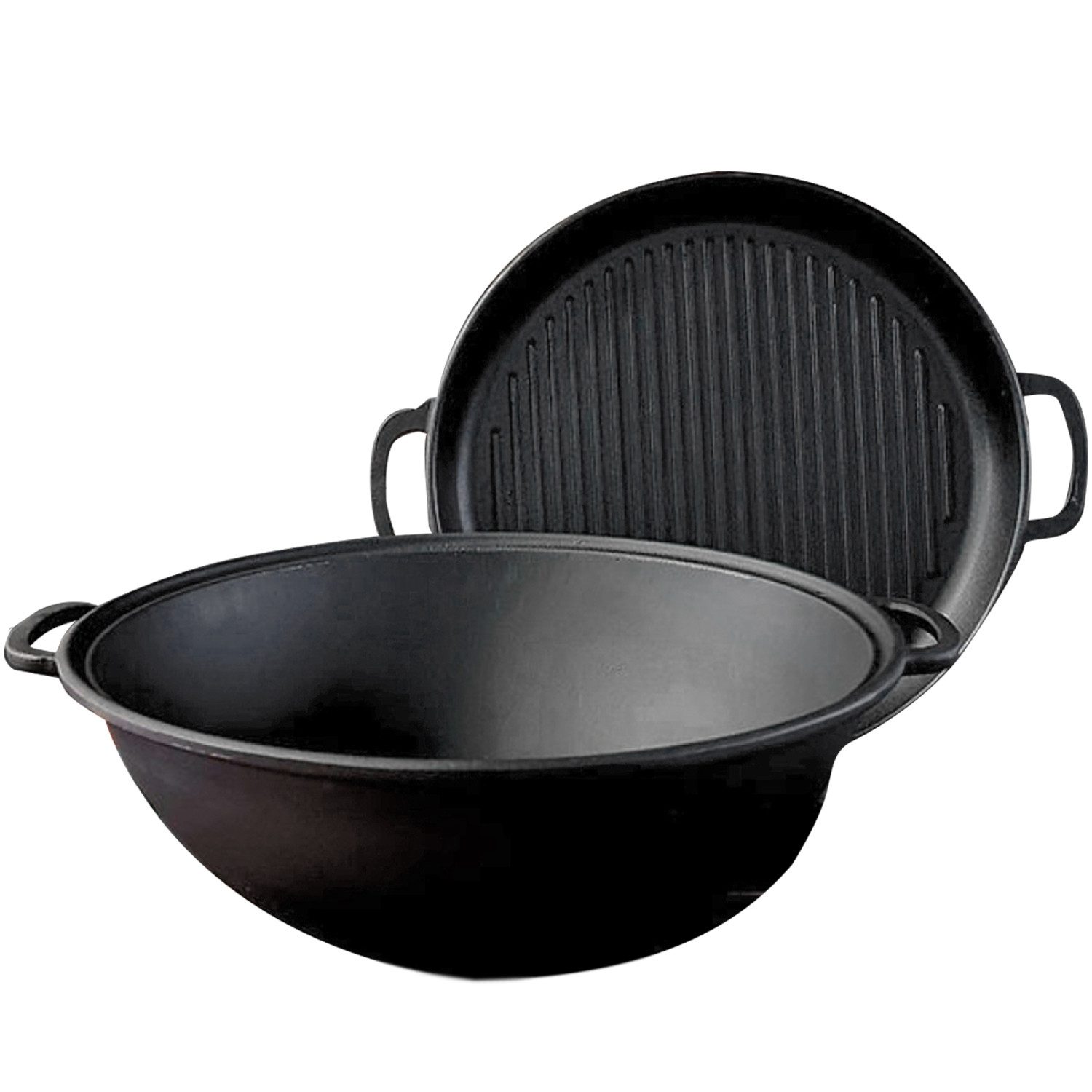 Kazan Gusseisen 12L Uzbekischer Kasan mit Grilldeckel