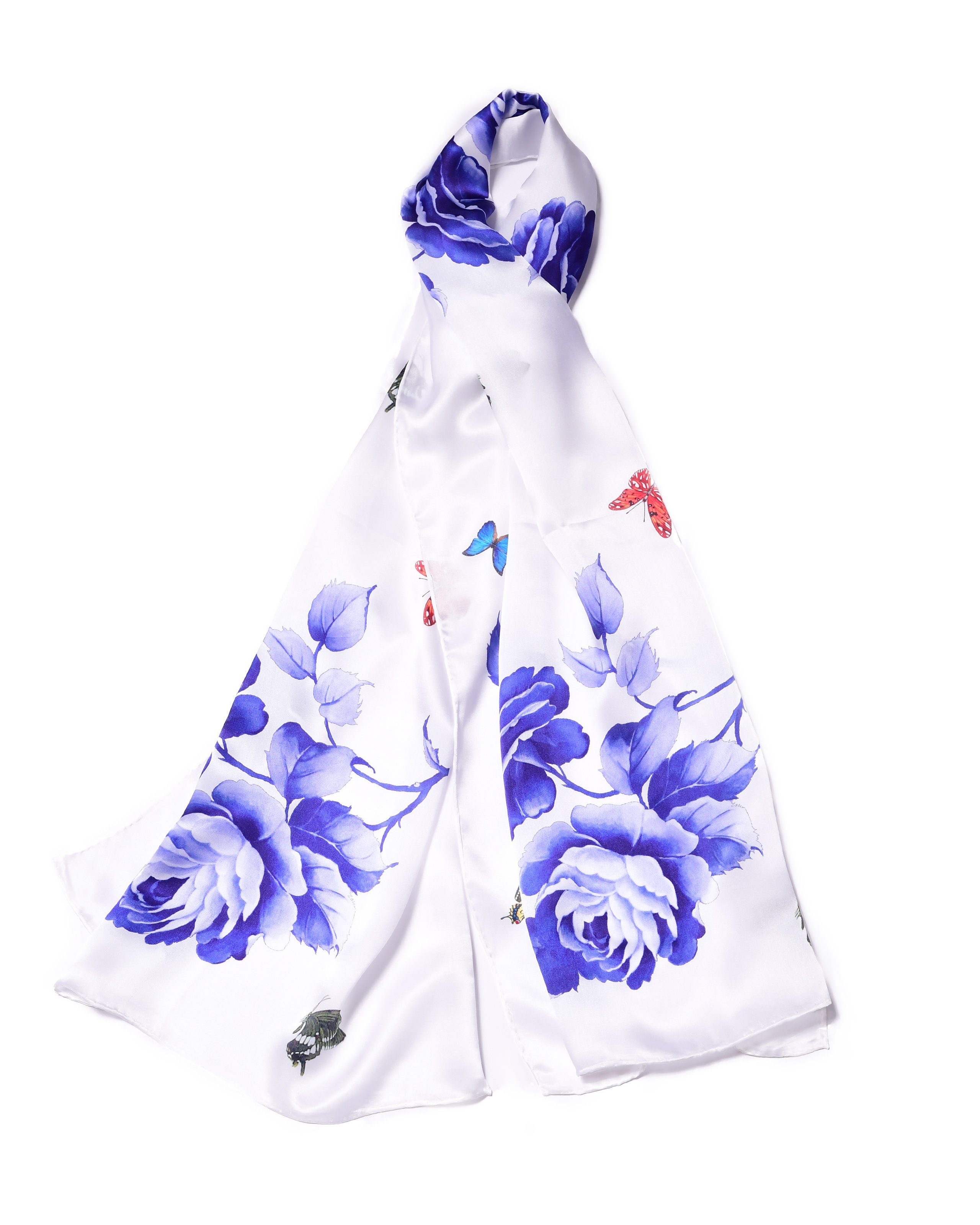 • floral gemusterter Schal aus 100% Seide, reine Naturfasern