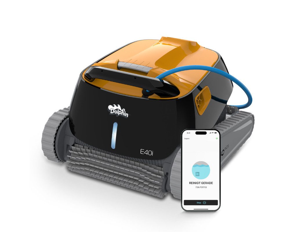 Mit dem Poolroboter Dolphin E40i bleibt Ihr Schwimmbad immer sauber und das ohne viel Mühe. Der Dolphin E40i überzeugt durch die durchdachte Ausstattung und neuste Technologien. Der Poolreiniger trägt zur effektivsten Reinigung von Boden, Wand - und Wasserlinie bei. Das Modell E40i verfügt über eine integrierte App-Steuerung zur Fernbedienung des Reinigers über ein Handy oder Tablet und einen Transportwagen zur Aufbewahrung und zum Transport des Reinigers.