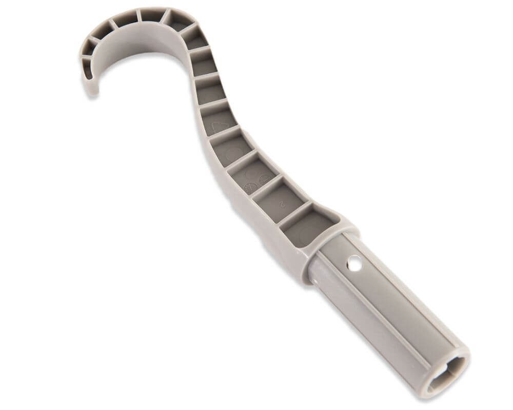 Die Dolphin LIBERTY Poolroboter wurden so konzipiert, dass sie kabellos im Pool arbeiten und nach Beendigung des Reinigungszyklus an die Wasseroberfläche steigen. Obwohl die Roboter über einen integrierten Griff verfügen, kann die Entnahme aus dem Wasser mit bloßen Händen dennoch umständlich sein. Hier bietet der Greifhaken eine praktische Lösung: Er lässt sich mühelos an eine handelsübliche Teleskopstange (nicht im Lieferumfang enthalten) befestigen und erleichtert das Einhaken sowie das sichere Herausheben des Roboters aus dem Pool.