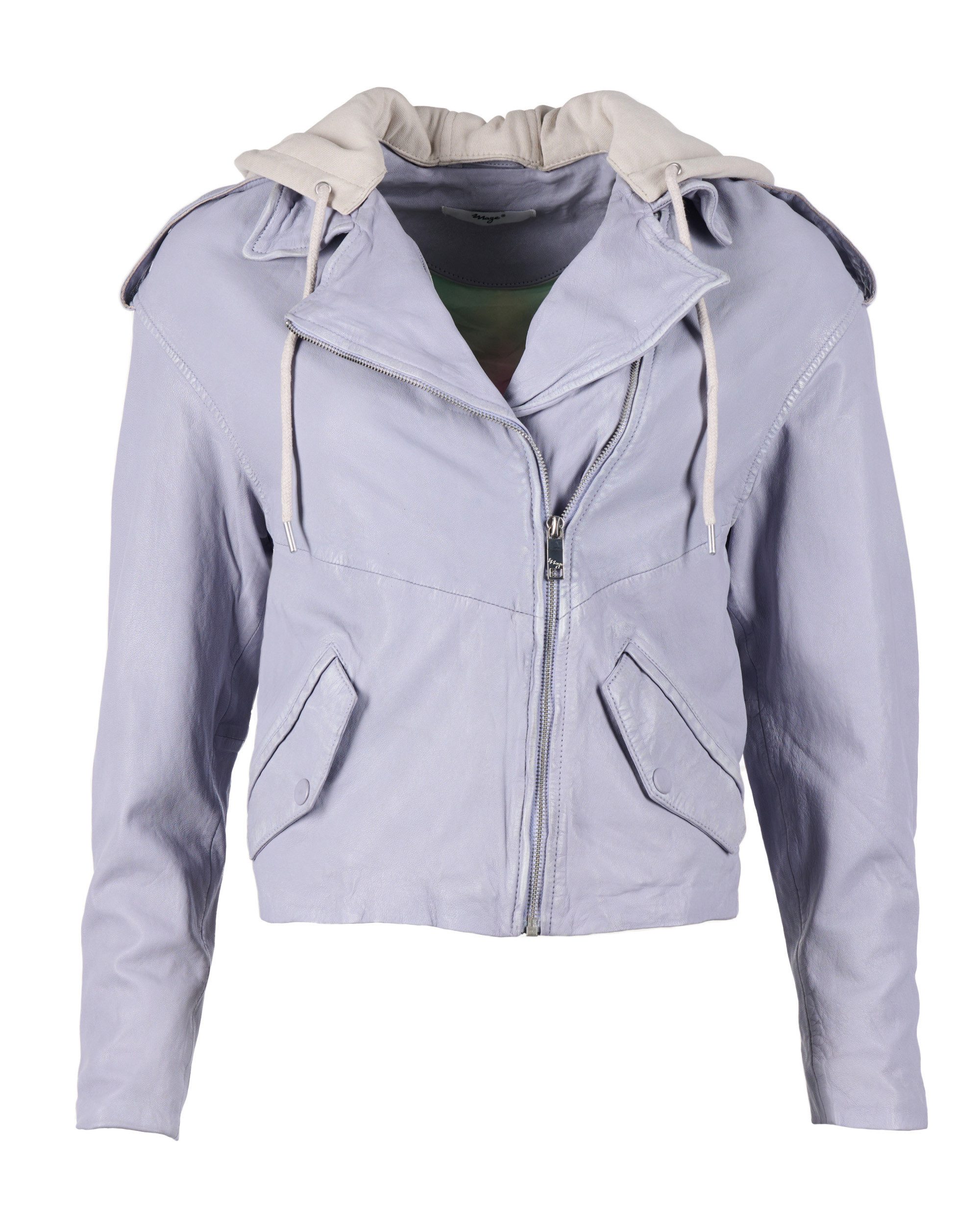 Materialzusammensetzung | Oberstoff: 100% Schafsleder; Futter: 100% Polyester; Ärmelfutter: 100% Polyester; Kapuze: 55% Baumwolle, 45% Polyester |