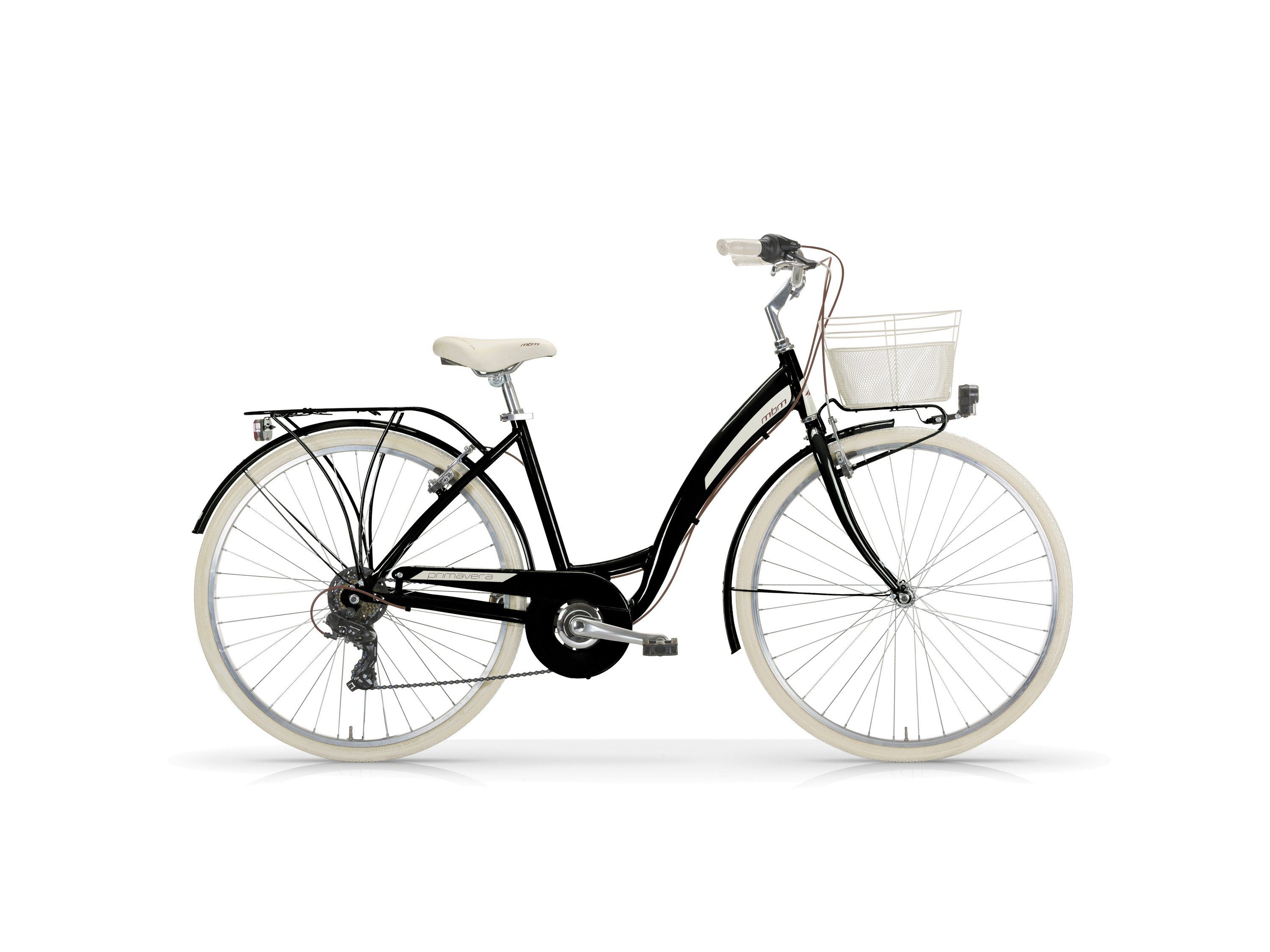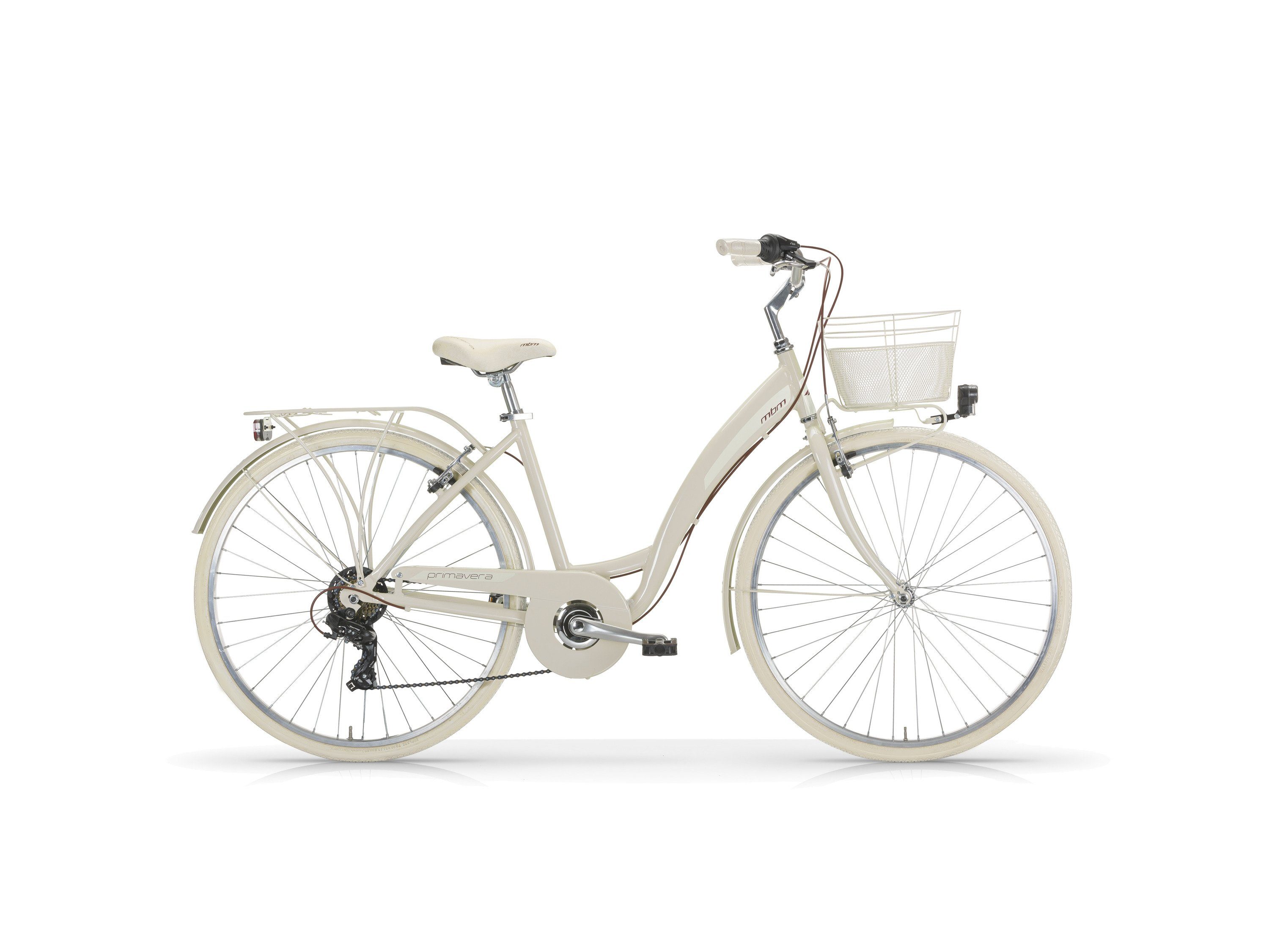 Das Bestseller Modell Primavera von MBM überzeugt nicht nur durch sein schickes italienisches Design, in Kombination mit den schönen Farben, sondern auch durch die solide Ausstattung. Dank der 6-Gang Kettenschaltung erreicht man immer mühelos das Ziel und die robusten V-Brakes bringen das Fahrrad jederzeit sicher zum Stehen. Die helle LED-Beleuchtung sorgt für Sicherheit auch in der Dunkelheit. Im Korb auf den vorderen Gepäckträger kann man Einkäufe oder andere Kleinigkeiten problemlos verstauen. Das perfekte Fahrrad für den Weg zur Arbeit oder für die City.