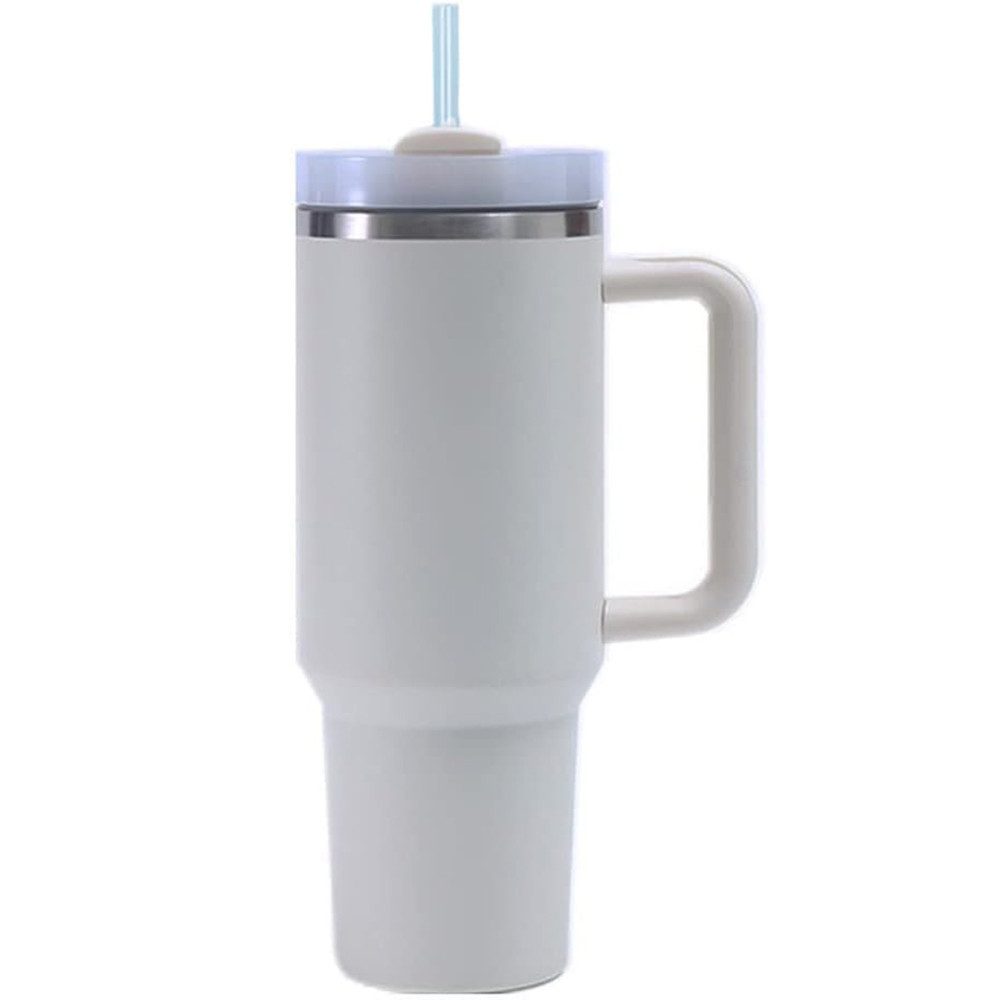 ISOLIERUNG & KALT BLEIBENDER KAFFEETASSE: 40oz Edelstahlbecher mit Henkel und Strohhalm verfügt über eine doppelwandige Vakuumisolierung, die 6-12 Stunden lang heiß und kalt hält.