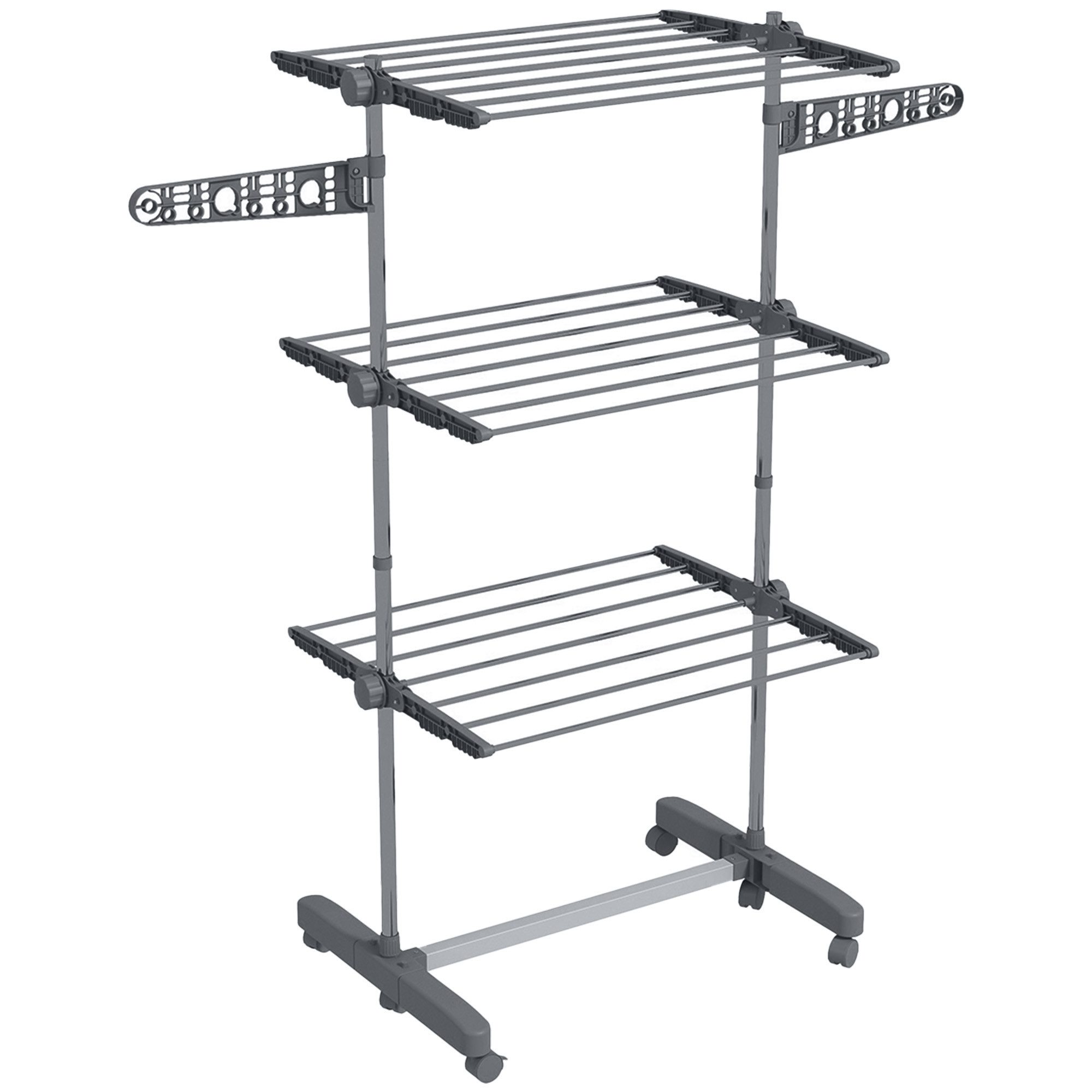 MC Star Wäscheständer Wäschetrockner Turm mit Rollen, 3 Ebenen, Klappbarer Standtrockner, mit Seitenflügel, Wäscheturm, Stahl, Grau