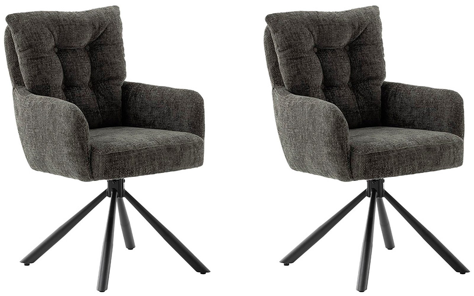 Bei diesen Armlehnstühlen »TULA Esszimmerstuhl (2er Set) - Stuhl« von MCA furniture wird Gemütlichkeit groß geschrieben. Die Drehfunktion ermöglicht ein einfaches Hinsetzen und Aufstehen, ohne den Stuhl verrücken zu müssen. Das ist vor allem dann vorteilhaft, wenn um den Stuhl herum wenig Platz ist. Komfort steht hierbei ganz weit oben, denn genauso wie die Sitzfläche, sind auch die Rücken- und Armlehnen gepolstert. Die maximale Belastbarkeit liegt bei einem Gewicht von 120 Kilogramm.