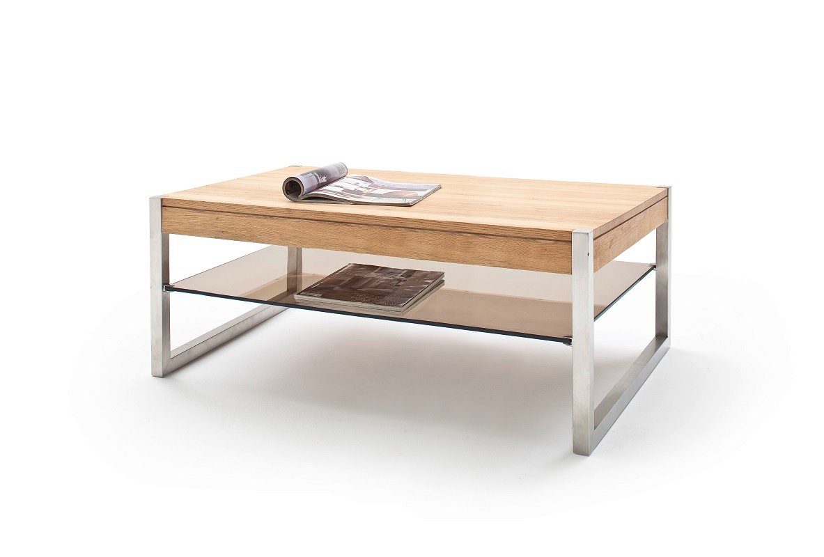 Ausstattung | Ablage aus Glas, Tischplatte aus Asteiche massiv, Gestell aus Metall |