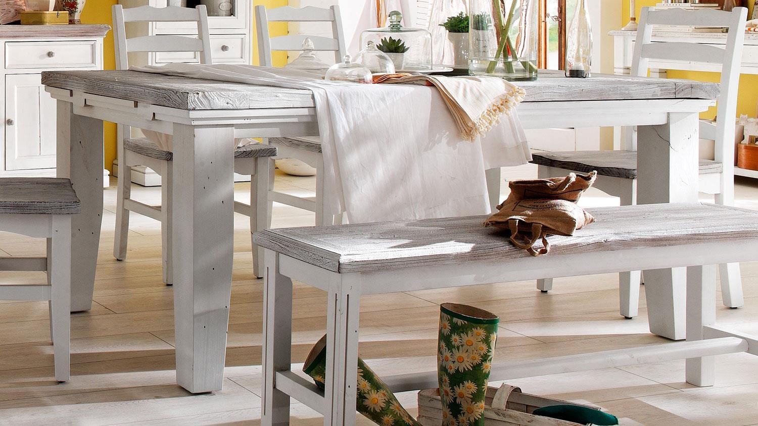Dieser Esstisch Opus präsentiert sich in wunderschönem Landhausstil und ist mit seinen einzigartigen charakteristischen Merkmalen das absolute Highlight im Esszimmer. Aus recyceltem Kiefer Massivholz in vintage used Look mit white sanded Absetzungen bietet der Esstisch eine unverwechselbare Optik. Neben seinem Design überzeugt sie zudem mit einem großzügigen Platzangebot.