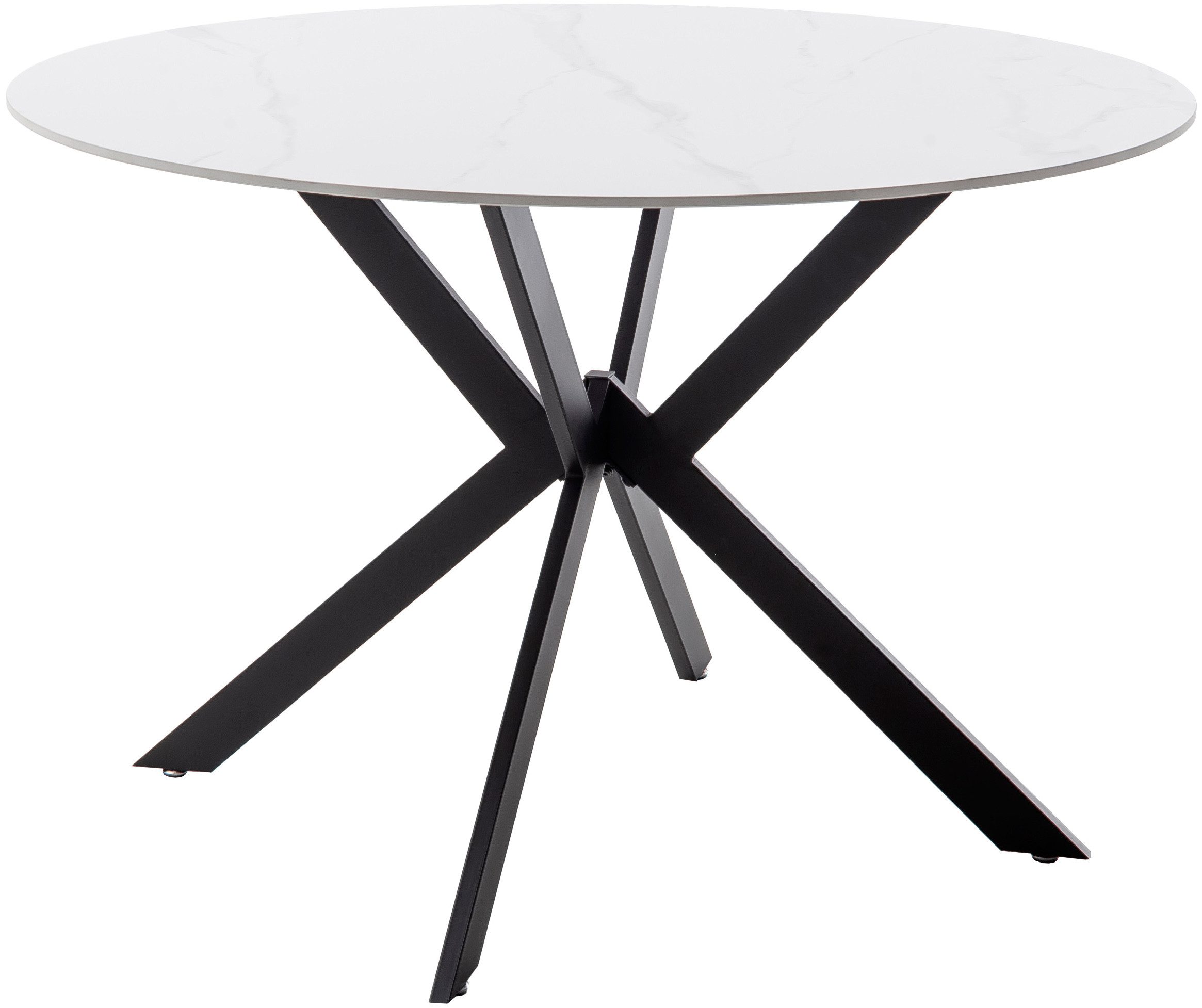 Wissenswertes | 4 Personen Maße ca. B/H/T: 120/76/120 cm Montagedauer ca. 30 Minuten, 2 Personen Tischplatte weiß marmoriert Tischplatten Stärke: 1,2 cm - Keramik haptisch angenehme, schöne Oberfläche perfekte Kantengestaltung runde Tischplatte |