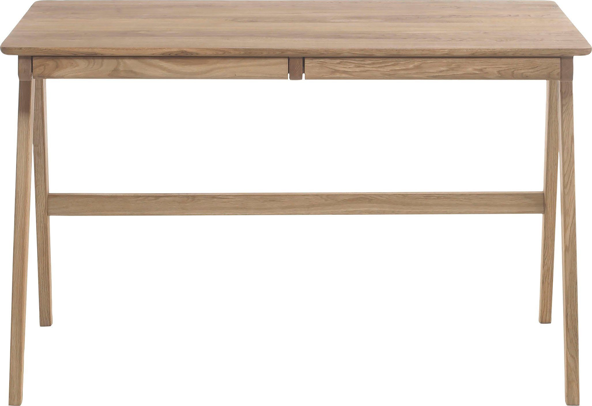 Wissenswertes | Abstand zwischen den Beinen vorne ca. 115 cm Boden bis Unterkante Schublade ca. 68 cm Mit 2 Schubladen je BxHxT 47,5x4x30 cm Schreibtisch in Massivholz Asteiche geölt Tisch belastbar bis max. 20 kg |