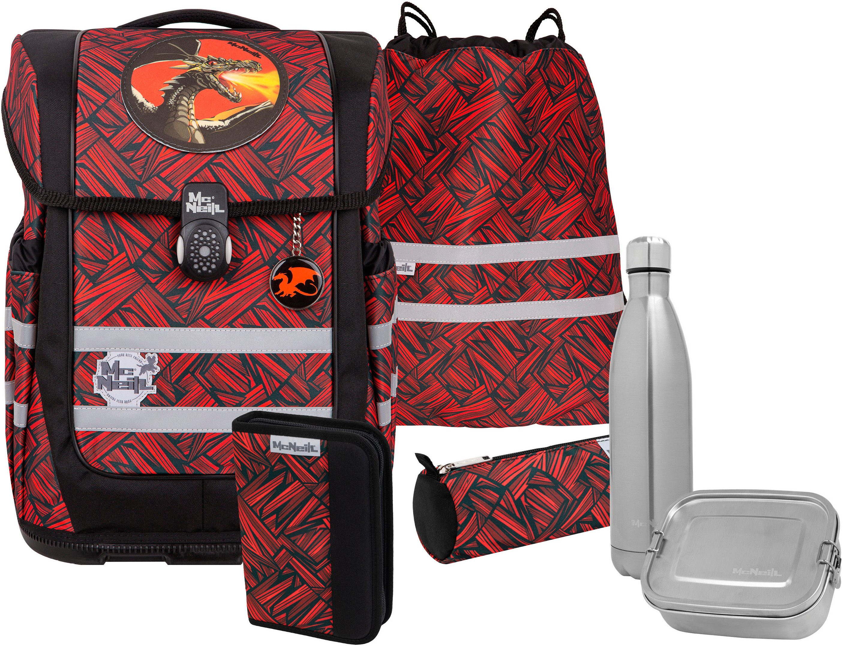 + Gratisgratis dazu: Brotzeitdose und Trinkflasche: Die McNeill Thermo-Trinkflasche. Passend zu den McNeill Ranzen, können bequem in den Seitentaschen der Ranzen mitgenommen werden. Füllmenge: ca. 500 ml. Material: Edelstahl. Die Lunchbox. Für das Pausenbrot, Obst und Gemüse, damit das Essen in der Pause schmeckt. B/T/H: ca. 14/17/6 cm. Material: Edelstahl. Bei nicht gefallen des Artikels beinhaltet die Rückgabe das Gesamtangebot.
