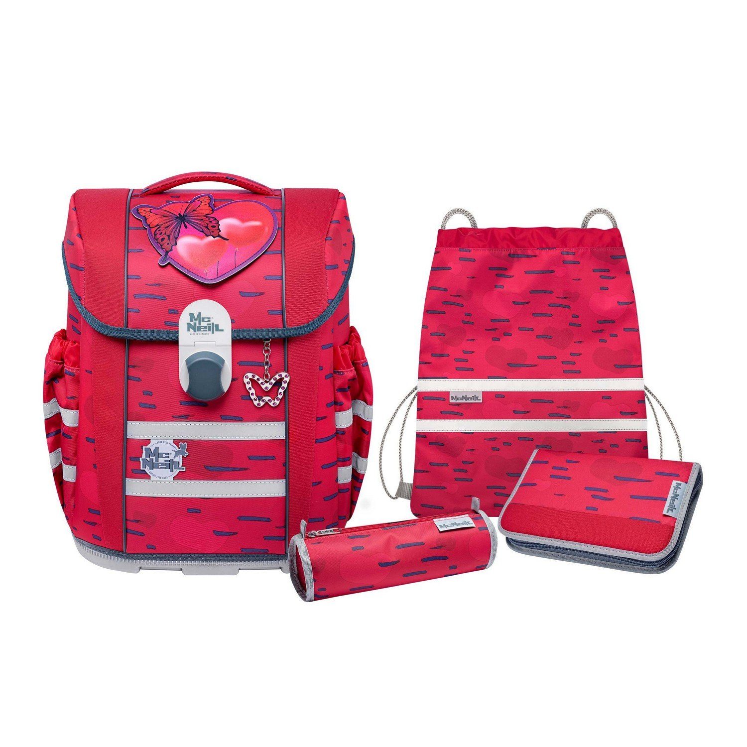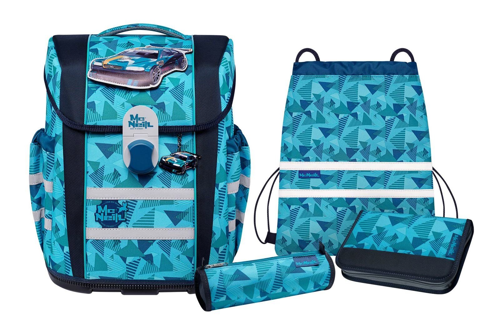 Ihr Kind kommt in die Schule und ist von eher zierlicher Statur? Dann ist der McNeill Mac2 Mood der perfekte Schulranzen für den künftigen Erstklässler. Denn mit einem Eigengewicht von nur knapp 1000 Gramm gehört der Mac2 Mood zu den leichtesten Schulranzen am Markt. Trotz des geringen Gewichts weiß der Ranzen mit einem Volumen von ca. 18 Litern zu überzeugen und bietet so mehr als genug Platz für die Schulsachen Ihres Kindes. In den beiden Seitentaschen, welche bequem mit einer Kordel verschlossen werden können, sind die Trinkflaschen super aufgehoben. Der höhenverstellbare Brustgurt und der abnehmbare Beckengurt sorgen für zusätzliche Entlastung der Schultern. Für einen sicheren Stand sorgt die stabile Bodenplatte und mit Hilfe des Magnetschlosses verschließt sich der Mac2 Mood fast von alleine. Und damit Ihr Kind auf dem Weg zur Schule im Straßenverkehr auch immer gut gesehen wird, verfügt der McNeill Mac2 Mood über zwei reflektierende Querstreifen.