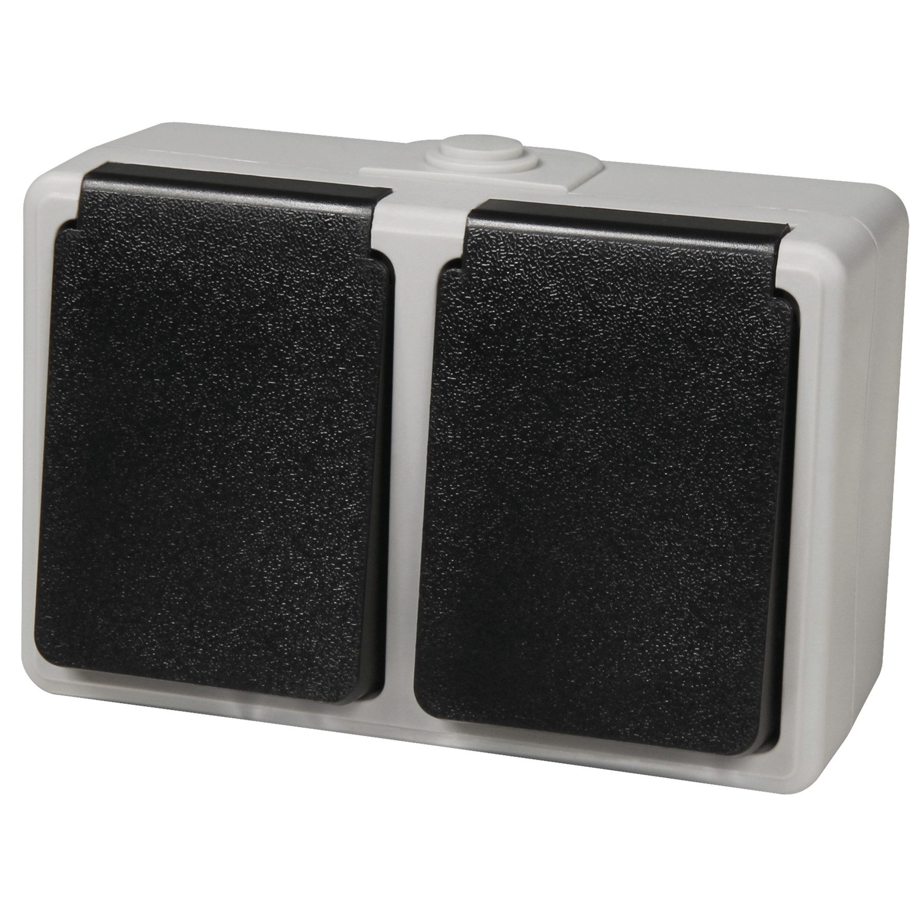 McPower Aufputz-Steckdose MCPOWER Feuchtraum-Doppelsteckdose Taff, 16A/250V, IP44, AP, grau