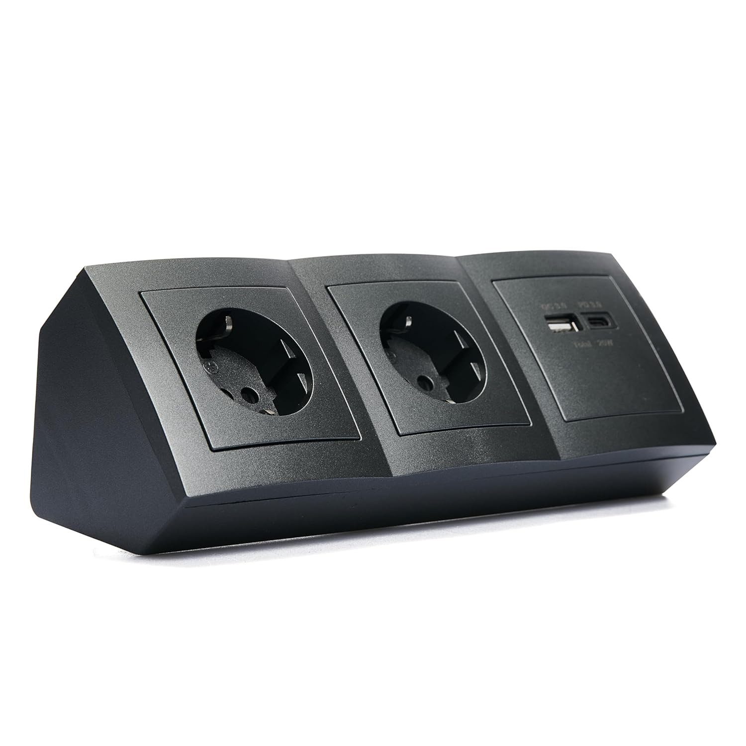 Steckdosenblock McPower "Flair" Aufbau, 2-fach Schutzkontakt + 2x USB A+C