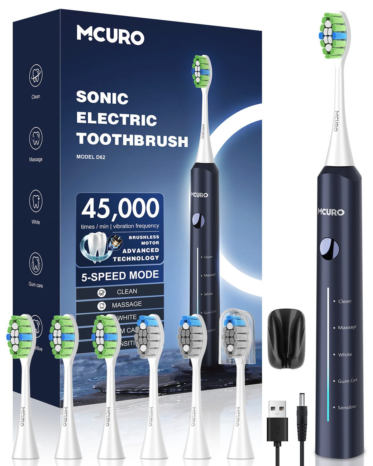 Lieferumfang | 1*Elektrische Zahnbürste 6*Ersatzbürstenköpfe 1*Aufladekabel 1*Wandhalterung 1* Bedienungsanleitung |