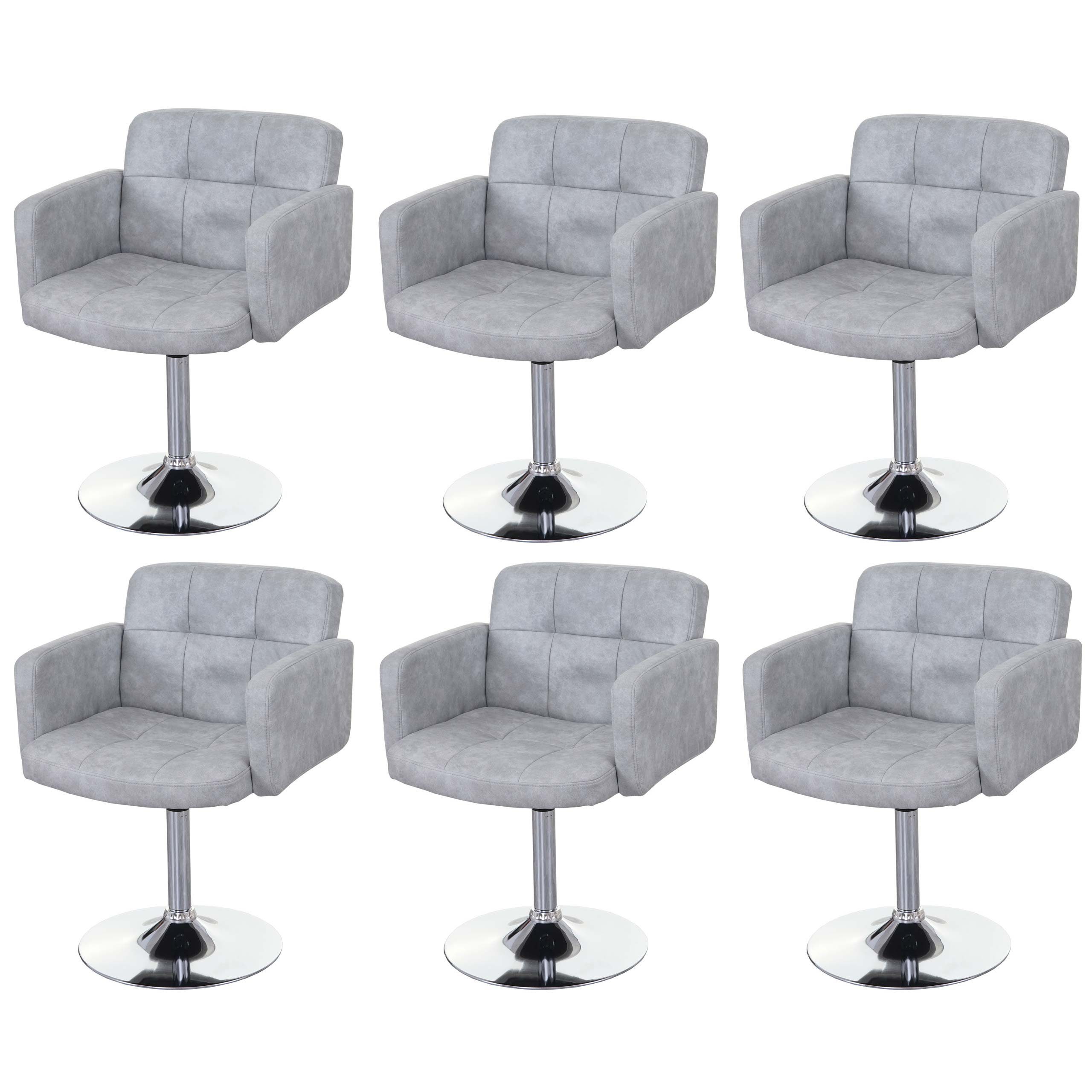 Nicht nur das formschöne und schlichte Design weiß bei diesem Esszimmerstuhl zu überzeugen, sondern auch der überraschend hohe Sitzkomfort mit einer Polsterstärke von 6 cm lässt ein längeres Verweilen zu, was man von einem bequemen Esszimmerstuhl erwarten darf. Zudem besitzt der Stuhl Armlehnen und wird nach dem Essen zum Lounger. Der verchromte zylinderförmige Fuß bietet einen sicheren Stand und runden das hochwertige Design perfekt ab. Um 360° drehbar, erfüllt dieser Esszimmerstuhl sämtliche Anforderungen und wird Ihnen lange Freude bereiten.