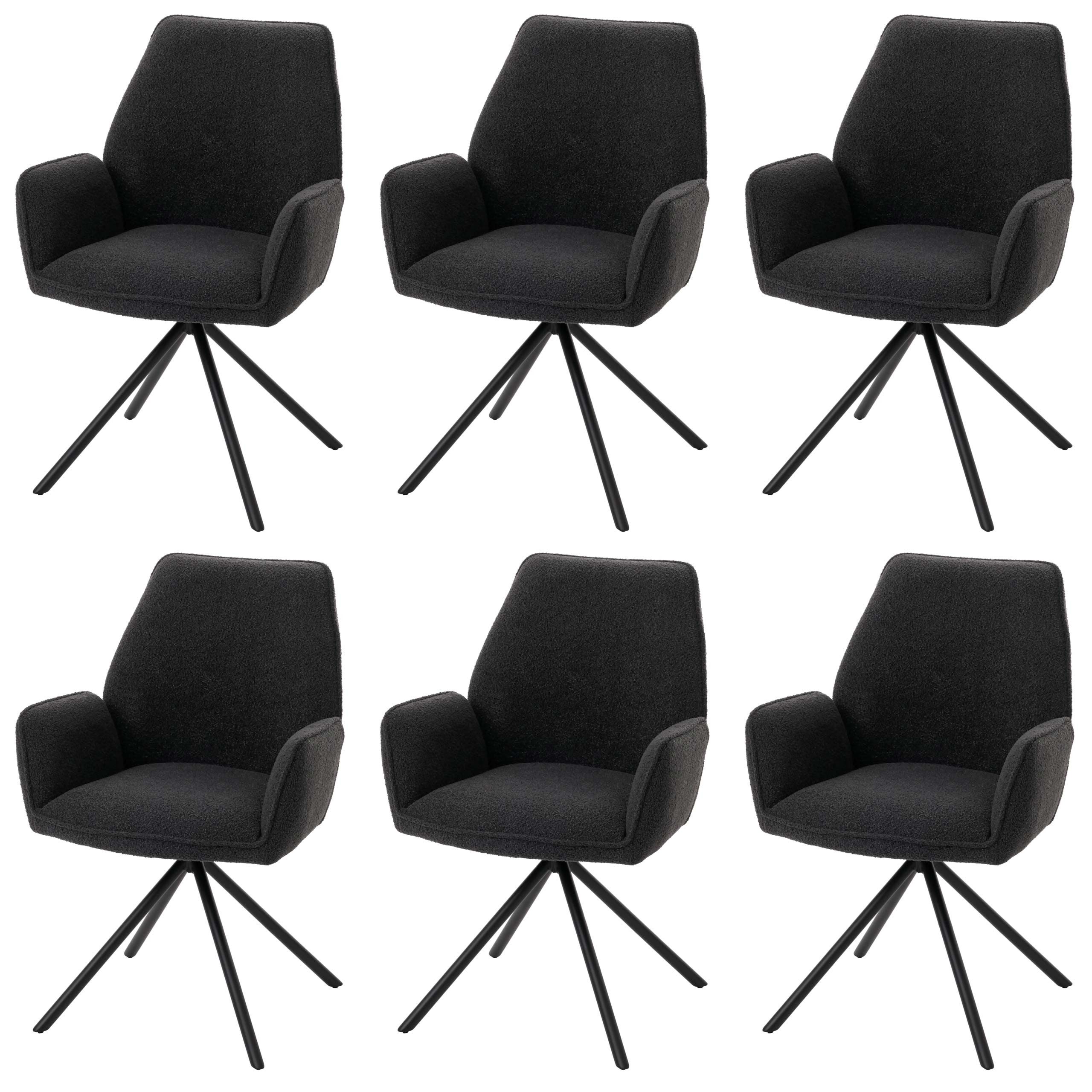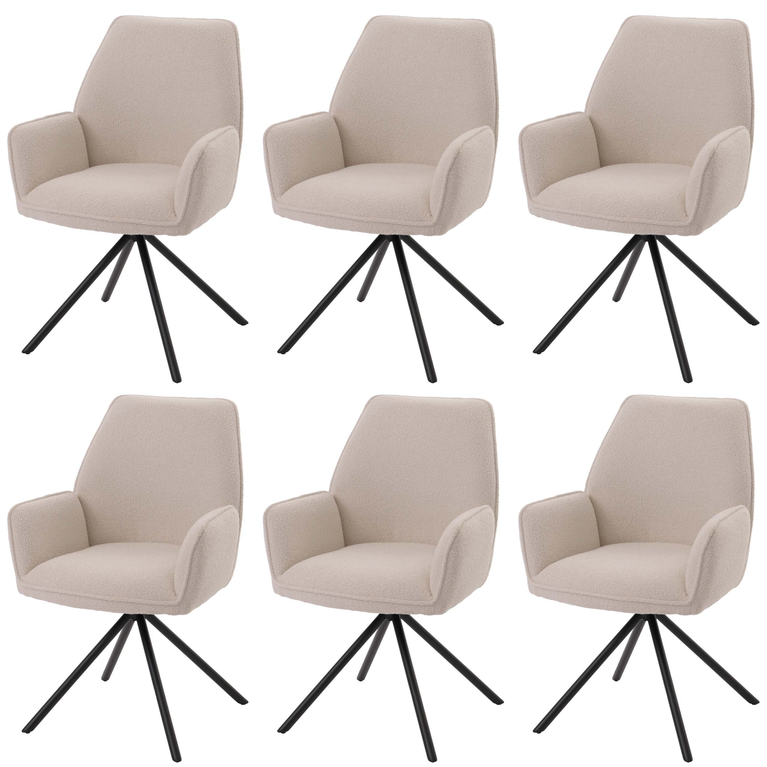 Dieser exklusive Esszimmerstuhl mit edlem Bouclé Stoffbezug vereint elegantes Design mit höchstem Komfort und Funktionalität, perfekt für anspruchsvolle Wohnräume. Der Bezug aus Bouclé verleiht dem Stuhl eine einzigartige, strukturierte Optik, die nicht nur visuell ansprechend ist, sondern auch besonders weich und gemütlich wirkt, wodurch Ihr Esszimmer einen Hauch von Luxus und Behaglichkeit erhält. Dieser Stuhl wird im praktischen 6er-Set geliefert, ideal für größere Essbereiche oder das stilvolle Ausstatten Ihrer Küche. Der Polsterstuhl verfügt über eine Auto-Position-Funktion, die dafür sorgt, dass er sich nach jeder Benutzung automatisch in die Ausgangsposition zurückdreht, was für ein stets aufgeräumtes und harmonisches Erscheinungsbild sorgt. Dank des leichtgängigen Kugellagers können Sie den Stuhl um 90° in beide Richtungen drehen, was Flexibilität und Bewegungsfreiheit ermöglicht.