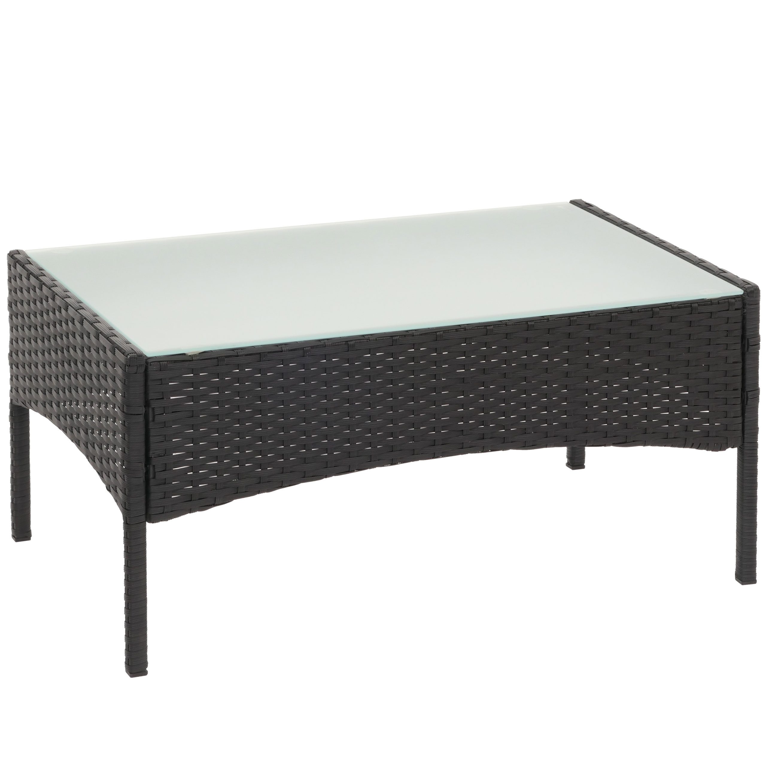 Material: Geflecht: Poly-Rattan Gestell: Stahl Tischplatte: Glas