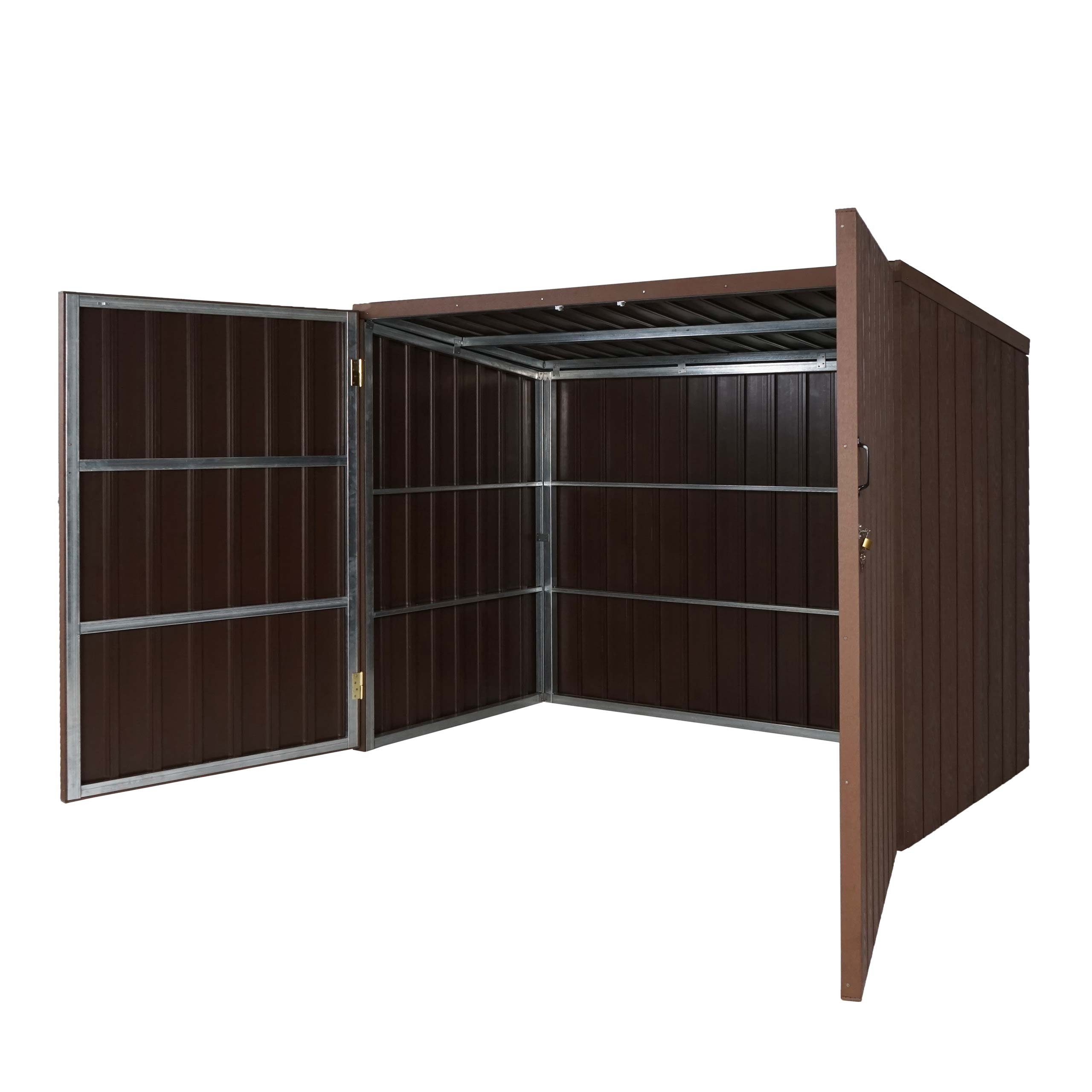 Materialzusammensetzung | Rahmen/Gestell: verzinkter Stahl, Wände: WPC* (Kunststoffholz), Wände: WPC* (Kunststoffholz), Dachfolie: Asphalt |