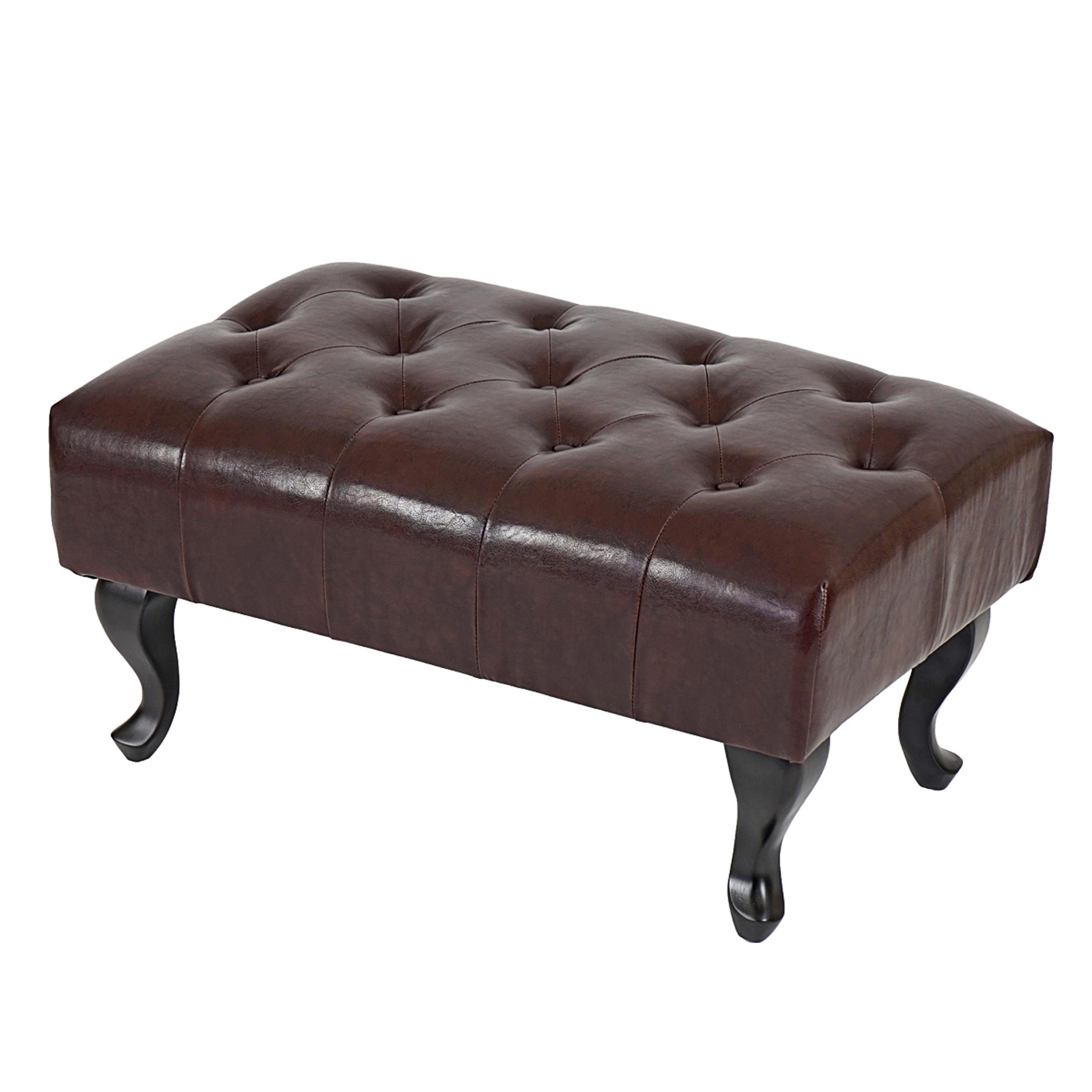 Diese Ottomane in eleganter Chesterfield-Optik sind so klassisch, so englisch, dass man beinahe erwartet, eine Tee trinkende Miss Marple oder einen Pfeife rauchenden Sherlock Holmes darauf sitzen zu sehen. Und genau wie bei diesen großen Figuren der Literaturgeschichte ist die Liebe zum Detail unverkennbar. Von den charakteristischen, polierten Massivholzbeinen bis zur edel gesteppten Kunstleder-Oberfläche - Charme und Stil einer ganzen Epoche machen dieses Produkt zu einem zeitlosen Klassiker der Möbel-Geschichte.