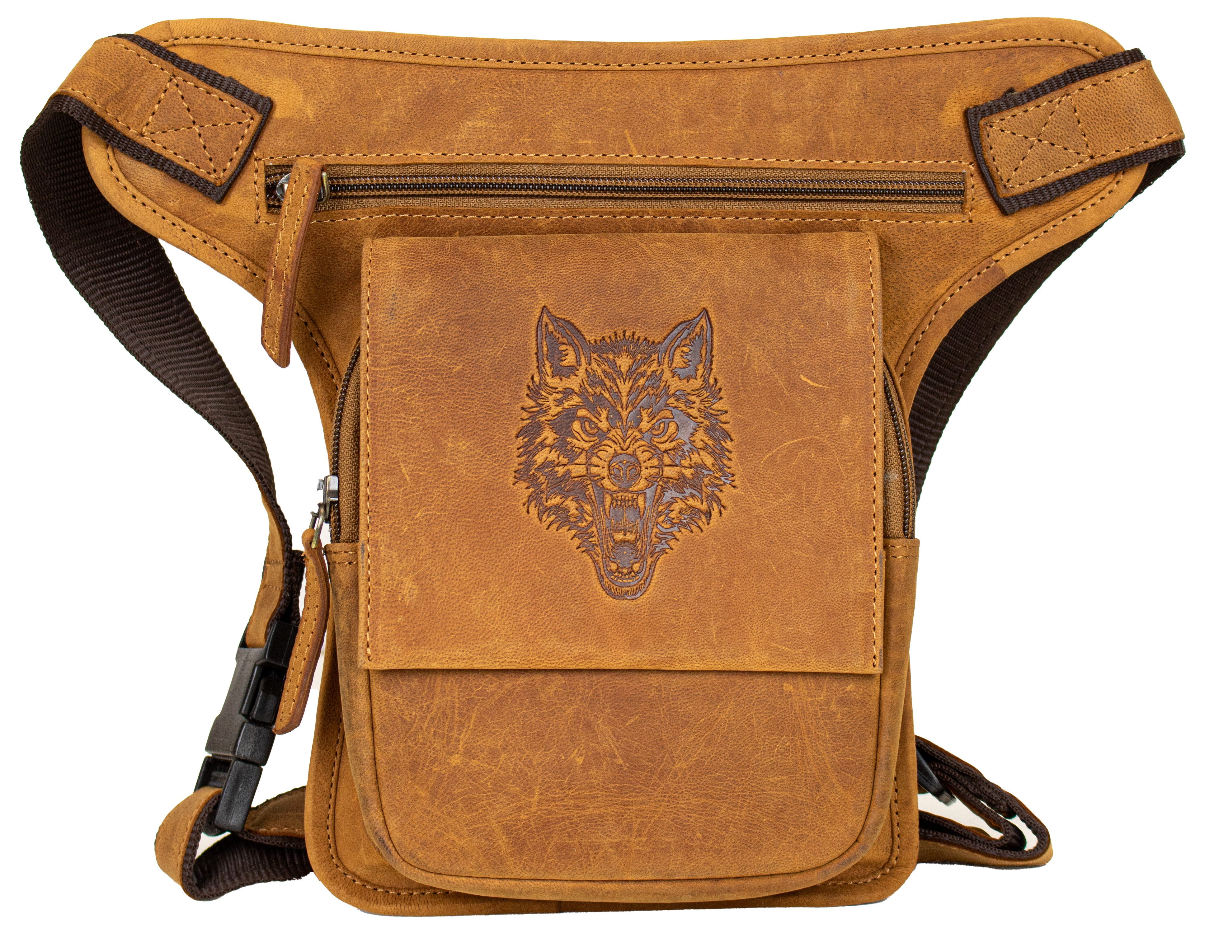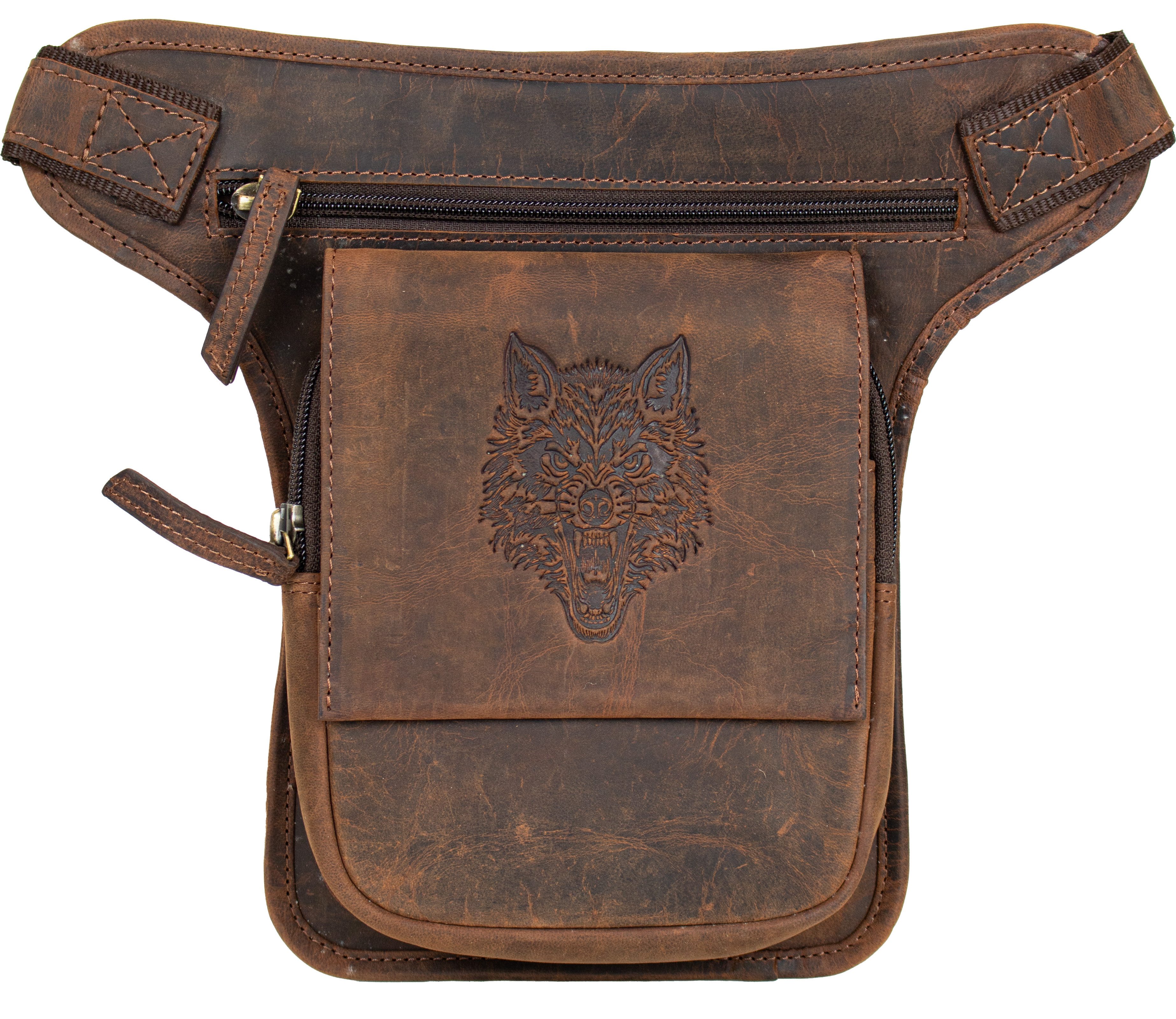 Diese Beintasche aus 100 % echtem Leder kombiniert markanten Look mit praktischer Funktionalität. Die auffällige Wolf-Prägung verleiht ihr einen individuellen Charakter – perfekt für Motorradfahrer, Festivalbesucher und Outdoor-Abenteurer. Verstellbare Hüft- und Oberschenkelgurte sorgen für sicheren Halt und hohen Tragekomfort. Farbe: Schwarz, Braun oder Cognac 100 % Echtes Leder Mit Wolf-Prägung Tragbar als Hüft-, Gürteltasche oder Beintasche Große Reißverschlusstasche (20 × 20 cm) Reißverschlusstasche (15 × 16 cm) Einstecktasche (12,5 × 13,5 cm) Klappe mit Druckknopf-Verschluss Длинаnverstellbarer Hüftgurt mit Karabiner Oberschenkelgurt mit Klickverschluss Gürtelumfang: 88 cm bis 135 cm Gesamtmaße: Höhe 26 cm × Breite 19,5 cm × Tiefe 4 cm Robuste Metallbeschläge und Reißverschlüsse Ideal für Motorradfahrer, Outdoor-Aktivitäten, Festivals und Reisen