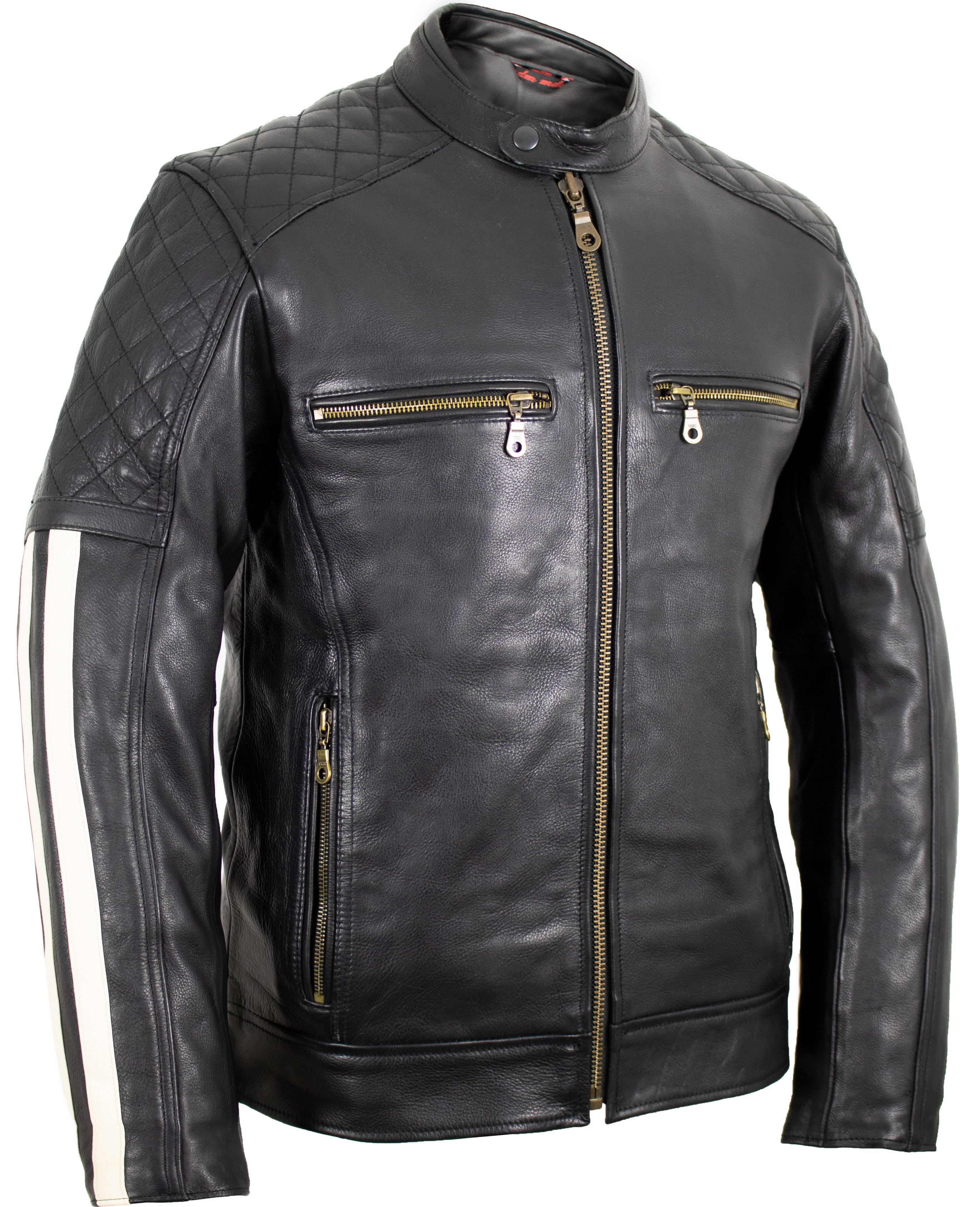 Erleben Sie die perfekte Kombination aus zeitlosem Stil, hochwertiger Verarbeitung und maximaler Sicherheit mit dieser Motorrad Lederjacke. Diese Jacke setzt Maßstäbe in Sachen Design, Komfort und Schutz – ein Must-have für jeden Motorradfahrer! Höchste Qualität und Verarbeitung Gefertigt aus echtem, weichem und robustem 100% Rindsnappa-Leder mit einer Lederstärke von 1,1 bis 1,2 mm, garantiert diese Jacke Langlebigkeit und Widerstandsfähigkeit. Die sehr gute Verarbeitung sorgt für einen angenehmen Tragekomfort, während das hochwertige Material eine ultrasmarte, stilvolle Optik bietet. Funktionalität trifft auf Komfort Vorderer Reißverschluss: Praktisch und einfach in der Handhabung. Vier vordere Reißverschlusstaschen: Bietet ausreichend Platz für Handy, Schlüssel oder andere Essentials. Herausnehmbares Thermo-Innenfutter: Ideal für alle Jahreszeiten – warm im Winter, leicht im Sommer. Reißverschlüsse an den Manschetten: Individuell anpassbar für mehr Komfort. Gestepptes Design an den Schultern: Verleiht der Jacke eine sportlich-dynamische Note. Innenfutter aus Polyester: Lässt sich bei Bedarf leicht herausnehmen und reinigen. Sicher unterwegs Die Jacke ist mit herausnehmbaren Protektoren an den Schultern, Ellenbogen und am Rücken ausgestattet, die optimalen Schutz auf der Straße bieten. Все Reißverschlüsse – innen wie außen – sind aus stabilem Metall gefertigt, was zusätzlich zur Langlebigkeit beiträgt. Zeitloser Stil Die schwarze Grundfarbe und das zeitlose Design machen diese Jacke zu einem stilvollen Begleiter, der sowohl auf als auch abseits des Motorrads für Aufsehen sorgt. Die perfekte Passform und die smarten Details machen sie zu einem echten Blickfang.