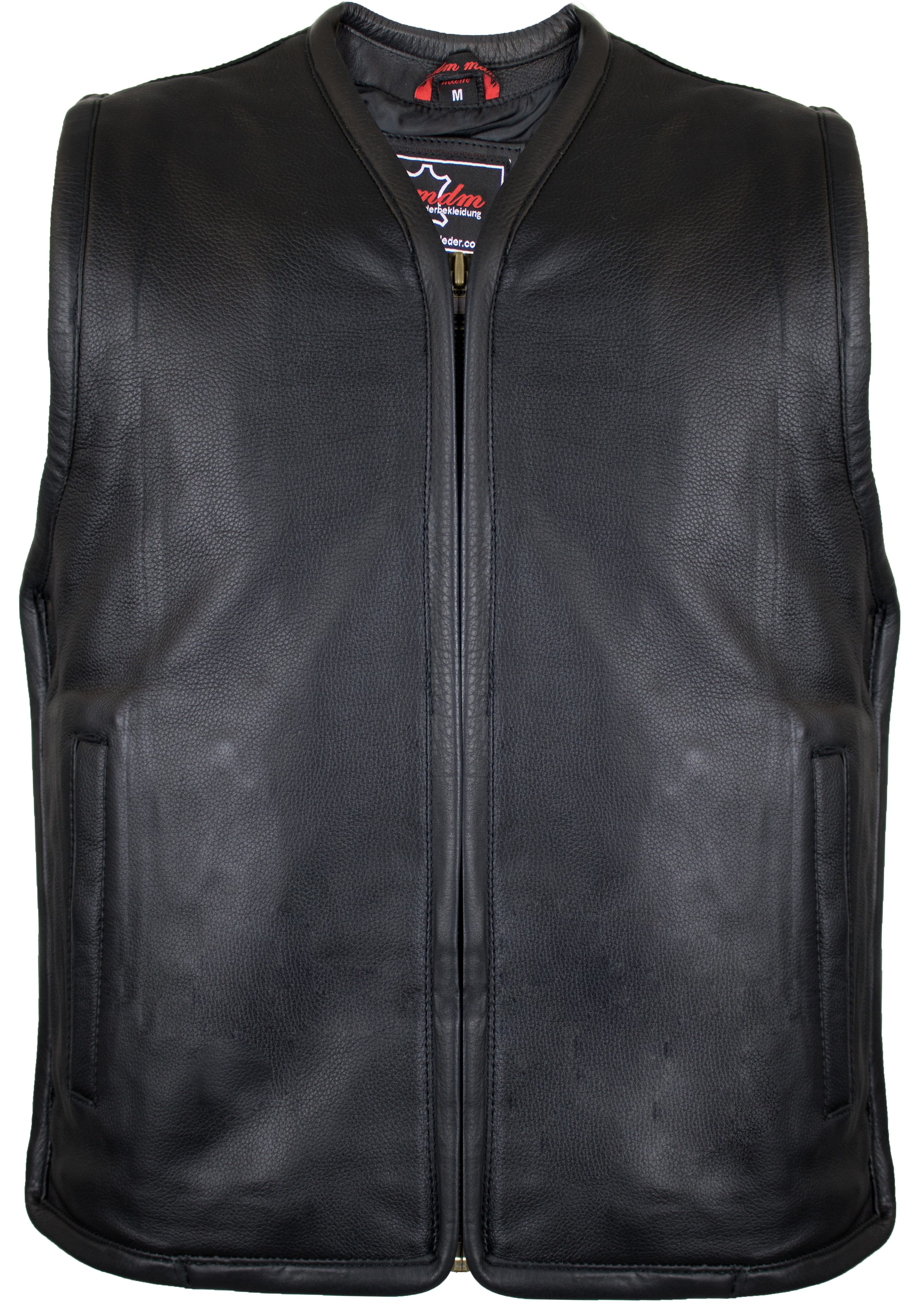 Hochwertige Materialien Echtes Rindsnappa-Leder: Dick und strapazierfähig, dennoch angenehm weich. Lederstärke: 1,1 bis 1,2 mm – langlebig und ideal für jede Fahrt. Innenfutter: Hergestellt aus hochwertigem Polyester, sorgt es für angenehmen Tragekomfort. Schlichte Eleganz und Funktionalität Einheitliche Front: Der vordere Bereich besteht aus einem durchgehenden Lederstück – ohne störende Nähte für einen cleanen Look. Kein Kragen: Perfekt, um die Weste über einem Hoodie oder einer Jacke zu tragen. Flexibilität für jeden Anlass Erweiterbare Seiten: Mit hochwertigen Reißverschlüssen von YKK können Sie die Weste an den Seiten um je 5 cm erweitern – insgesamt bis zu 10 cm mehr Umfang. So passt die Weste auch bequem über eine Jacke. Praktische Taschen: 2 Außentaschen und 2 Innentaschen (eine davon mit Reißverschluss) bieten ausreichend Platz für Schlüssel, Geldbörse und Handy. Zuverlässige Details Hochwertige YKK-Reißverschlüsse: Langlebig und zuverlässig – sowohl am Frontverschluss als auch bei den Erweiterungsreißverschlüssen. Eingefasst mit Lederband: Die Weste ist rundherum mit einem dekorativen Lederband ausgestattet, das für eine besondere Optik sorgt.