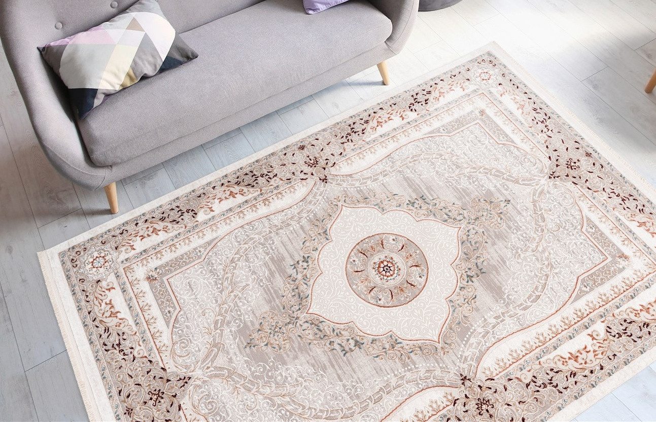 **Stilvoller Teppich mit Vintage-Charakter** Dieses Teppichmodell lässt sich dank der dezenten Farbgebung mit vielen Stilrichtungen kombinieren. Seinen Vintage-Charakter erhält der Teppich vor allem durch attraktive Verwaschungen, die für den angesagten Used-Look sorgen. Dieser wird durch die schwache Farbgestaltung zusätzlich unterstrichen. Verstärken Sie den Charakter des Teppichs durch weitere Vintage-Möbel und -Accessoires, sodass Sie ein attraktives Gesamtbild im Vintage-Look schaffen. Doch auch wenn Vintage nicht Ihr Stil ist, können Sie Ihre bestehende Einrichtung mit dem Teppich aufwerten.