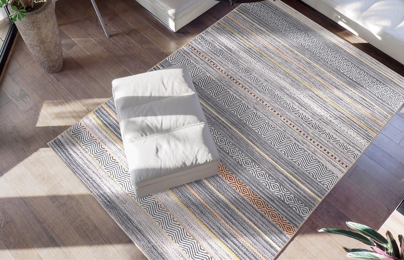 Maschinell gewebter Teppich | Beim Auslegen des Teppichs kann durch das Aufrollen der Teppich etwas wellig erscheinen, dieses legt sich nach kurzer Zeit aus. Sie können dieses etwas beschleunigen wenn Sie den Artikel in gegenläufiger Richtung nochmals aufwickeln. |