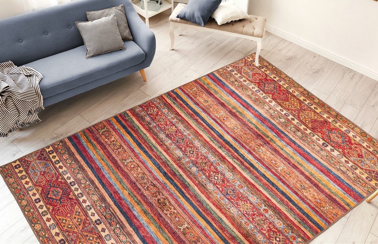 Maschinell gewebter Teppich | Beim Auslegen des Teppichs kann durch das Aufrollen der Teppich etwas wellig erscheinen, dieses legt sich nach kurzer Zeit aus. Sie können dieses etwas beschleunigen wenn Sie den Artikel in gegenläufiger Richtung nochmals aufwickeln. |