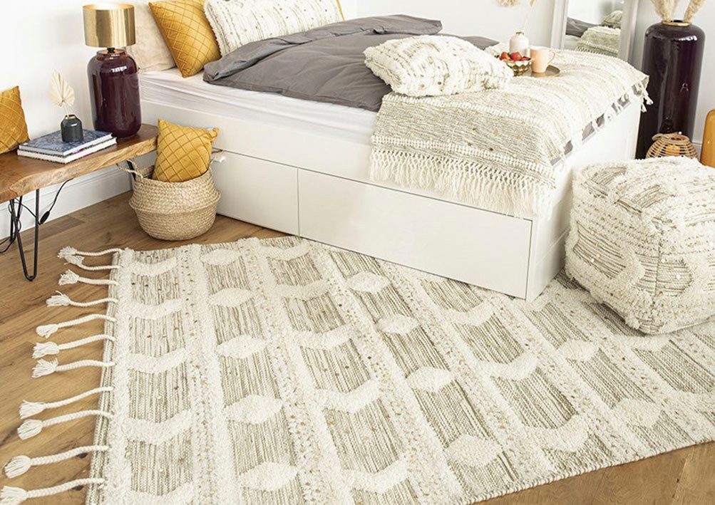Zeitloser Teppich aus Wolle Dieser Wollteppich bringt das Gefühl von Gelassenheit, Einklang und Freiheit in die eigenen vier Wände. Ob Boho, Hippie oder Ethno genannt, dieses Accessoire ist nicht nur Einrichtungsgegenstand sondern Lebensgefühl. Mit seiner charmanten Erscheinung lädt er zum Verweilen ein und lässt verspielt das Träumen am Tag zu. Als Teil eines harmonischen Gesamtbildes sind der Kreativität keine Grenzen gesetzt. Zudem punktet er mit seiner Gemütlichkeit besonders beim wolligen Laufempfinden. Ein absoluter Hingucker, der es versteht in der Innenraumgestaltung mit Stilen zu gehen oder sie bewusst zu brechen. Per Hand gefertigt, besteht der Läufer aus hochwertiger Wolle. Die Применитьung lassen ihn kinderleicht pflegen und machen strapazierfähig. Regelmäßiges Ausbürsten sorgt für langanhaltende Freude an den hervorgehobenen Strukturen, welche seinen Charakter prägen. Dank der verarbeitenden Baumwollrückseite sind Rutschfestigkeit und Schrittschalldämmung weitere Attribute. Die Nutzung auf beheizten Böden ist problemlos möglich. Die Auswahl erstreckt sich über verschiedene Größen und Muster. Dadurch ist für alle Räumlichkeiten der passende Flor für die Innengestaltung vorhanden. Aufgrund unterschiedlichen Lichteinfalls und der natürlichen Beschaffenheiten kann sich die Farbgebung von den Bildern unterscheiden.
