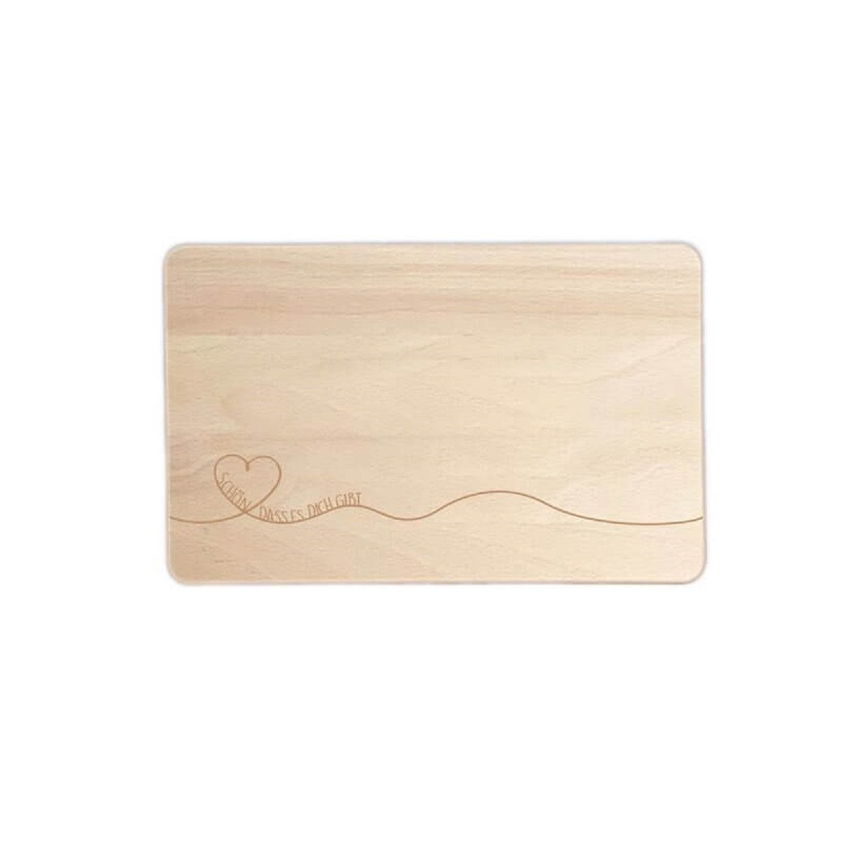 Unser Brettchen aus naturbelassenem Buchenholz mit der herzlichen Aufschrift "SCHÖN, DASS ES DICH GIBT" ist das perfekte Geschenk.