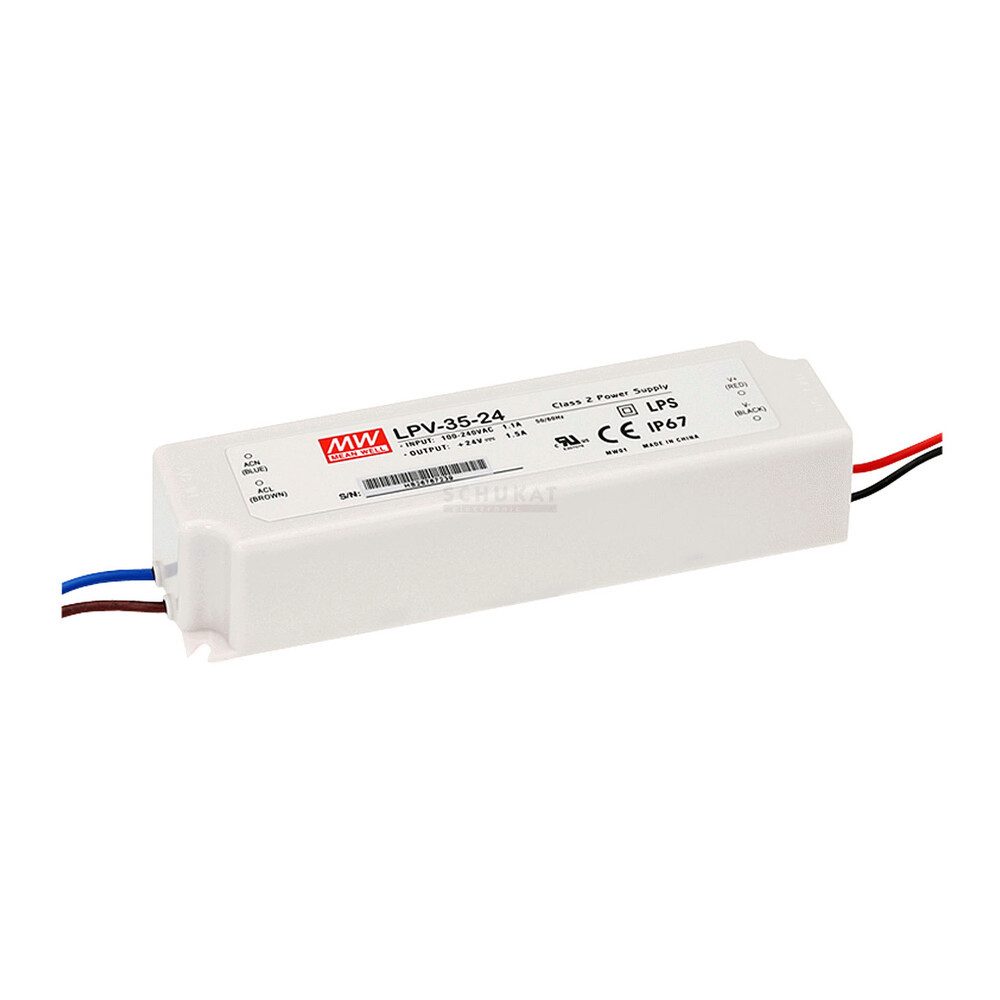 Das Netzteil bietet eine Konstante Ausgangsspannung von 36 Volt bei variabler Stromstärke in Abhängigkeit von der Leistung des Verbrauchers und ist somit für den Einsatz mit LEDs geeigent. Die maximale Ausgabeleistung beträgt 35 Watt. Die Dauerleistung liegt bei ca. 80% von diesem Wert. Zudem ist dank dem Schutzgrad von IP67 das Innenleben gegen Feinstaub und starkes Spritzwasser geschützt und das Netzteil kann ohne Probleme im Outdoor- oder Feuchtbereichen eingesetzt werden.