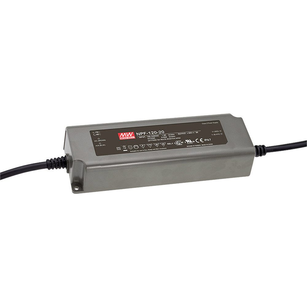 LED-Schaltnetzteil im Kunststoffgehäuse für LED- und Beleuchtungsanwendungen, mit niedriger Leerlaufleistung.