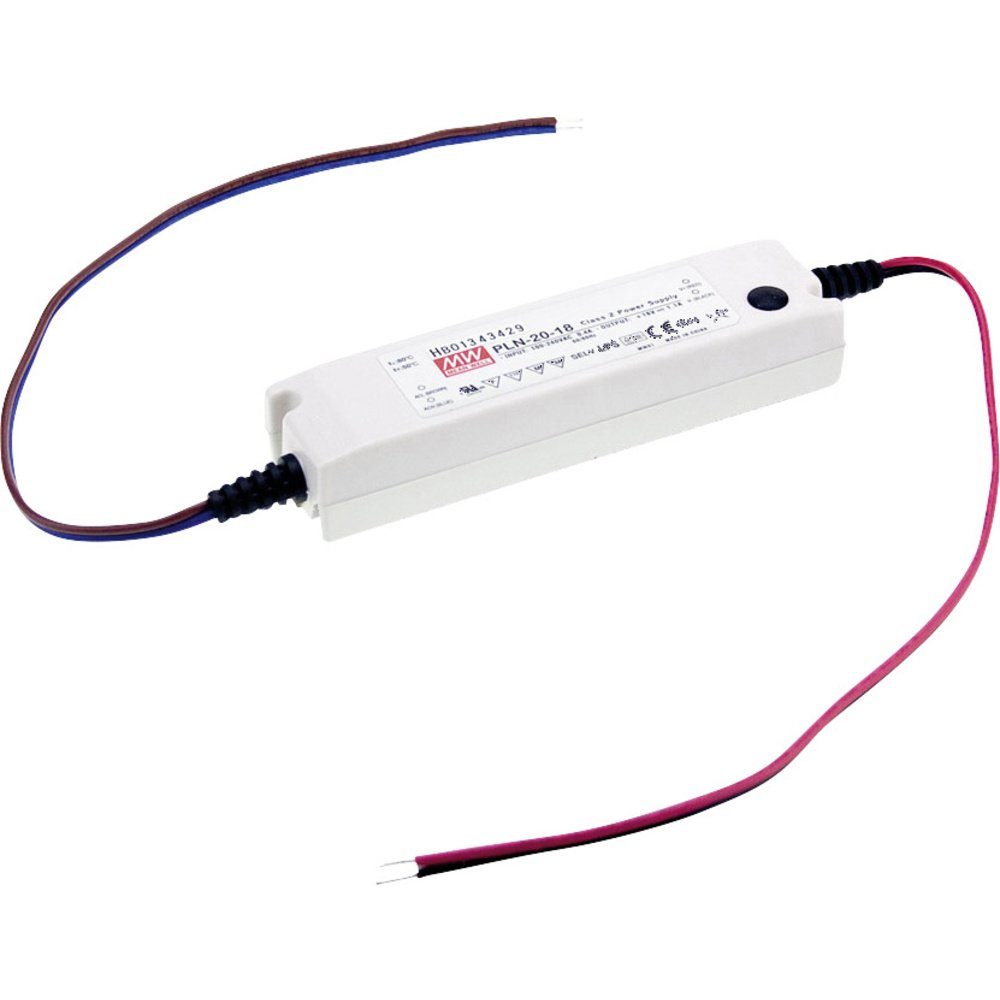 LED-Netzteil im Kunststoffgehäuse mit einem Eingangsspannungsbereich von 90~277VAC. Mixed Mode Ausgang (Konstantspannung bis Maximalstrom, danach Konstantstrom) (C.V.+C.C.