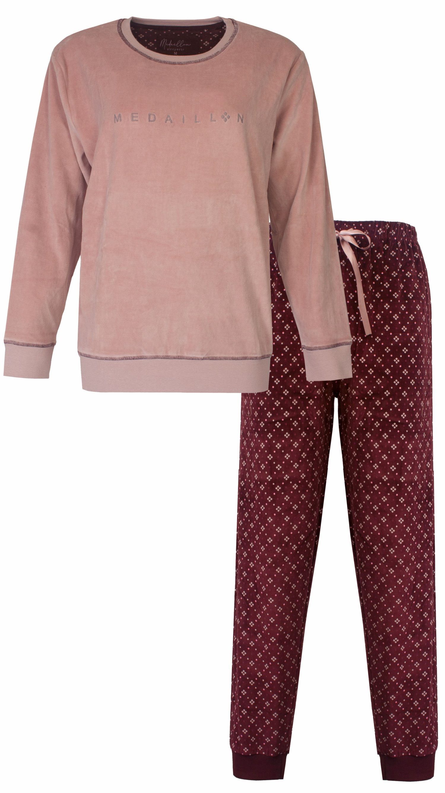 Der Medaillon Damen Nikki Schlafanzug ist ein komfortables und stilvolles Kleidungsstück, das sich ideal für erholsame Nächte und entspannte Stunden zu Hause eignet. Er besteht aus einem hochwertigen Materialmix, der zu 80 % aus Baumwolle und zu 20 % aus Polyester gefertigt ist. Diese Kombination sorgt dafür, dass der Schlafanzug sowohl weich und hautfreundlich als auch formstabil und pflegeleicht ist. Baumwolle bietet dabei eine natürliche Atmungsaktivität, die ein angenehmes Hautgefühl und eine gute Feuchtigkeitsregulierung gewährleistet, während der Polyester-Anteil für Strapazierfähigkeit und Langlebigkeit sorgt. Der Schlafanzug besitzt einen klassischen Rundhalsausschnitt, der für einen lässigen und zeitlosen Look sorgt. Dieser Schnitt ermöglicht eine bequeme Passform und verleiht dem Oberteil des Schlafanzugs eine schlichte Eleganz. Die langen Ärmel und das Oberteil sind mit Bündchen versehen, was einen sicheren Sitz gewährleistet. Der Nikki Schlafanzug ist vielseitig einsetzbar und eignet sich sowohl für den Einsatz als Nachtwäsche als auch für entspannte Tage zu Hause, an denen man sich gemütlich einkuscheln möchte. Die Kombination aus weichem Stoff und einer durchdachten Passform macht ihn zu einer ausgezeichneten Wahl für Frauen, die Komfort und Stil in ihrer Nachtwäsche schätzen.