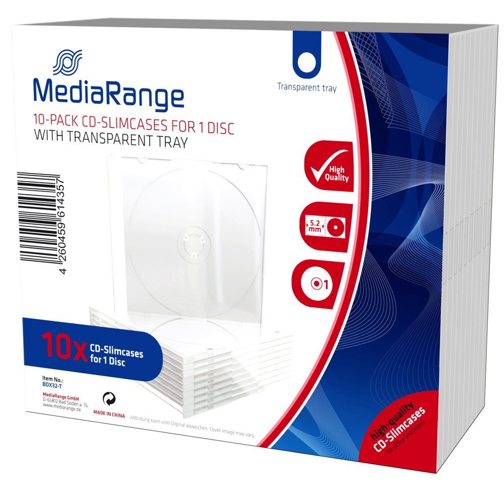 • 10 Mediarange CD Hüllen 1er Slimcase 5,2 mm für je 1 BD / CD / DVD transparent