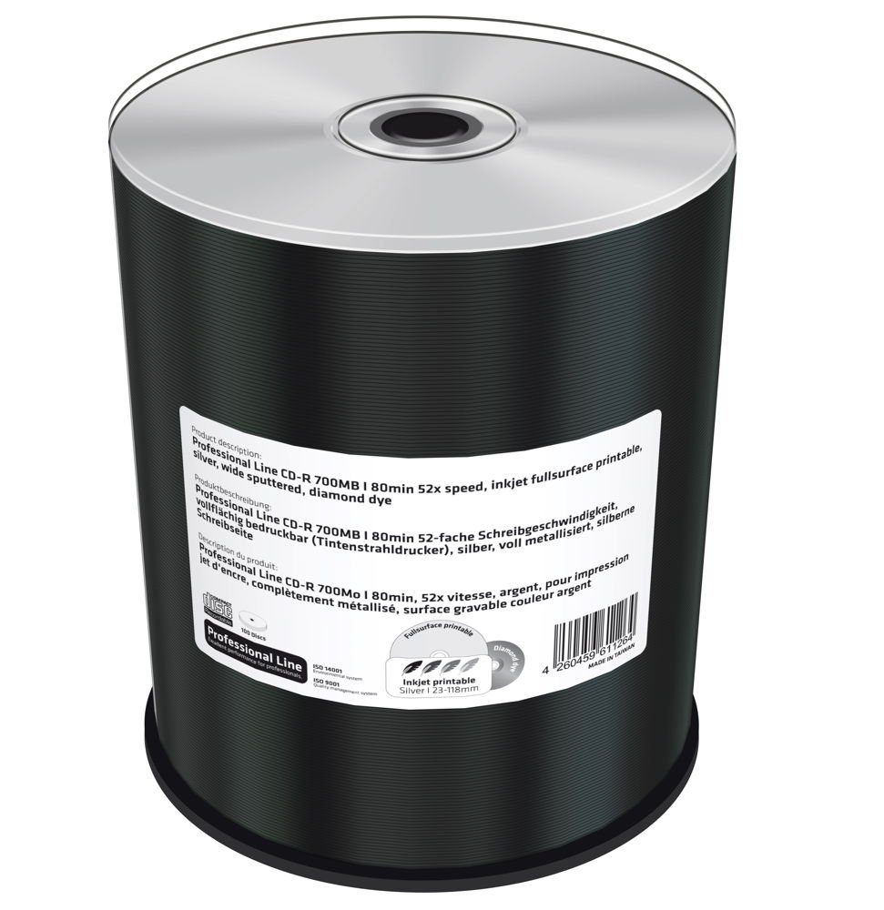 CD-Rohling 100 Professional full printable silver diamant 80Min 700MB 52x Spindel