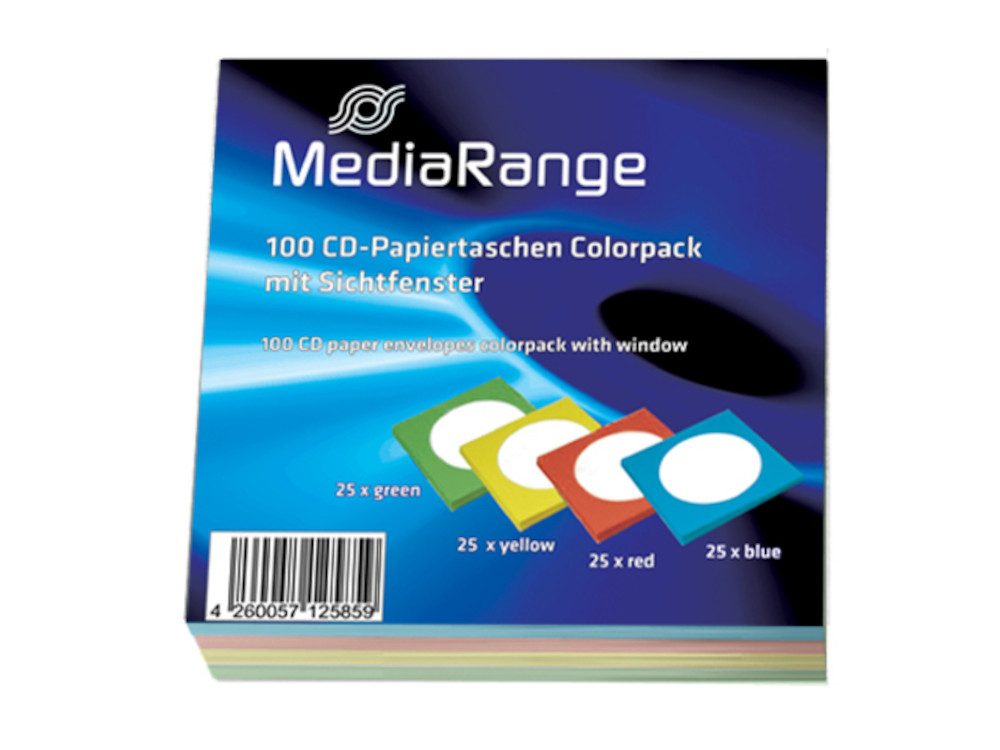 Mediarange DVD-Hülle 500 (5x 100Stk) CD Papierhüllen DVD Hüllen 125x rot grün blau gelb