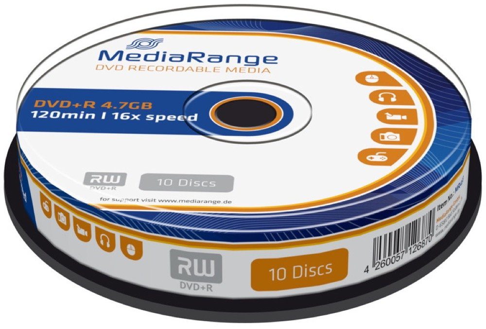 • 10 Mediarange Rohlinge DVD+R 4,7GB 16x Spindel