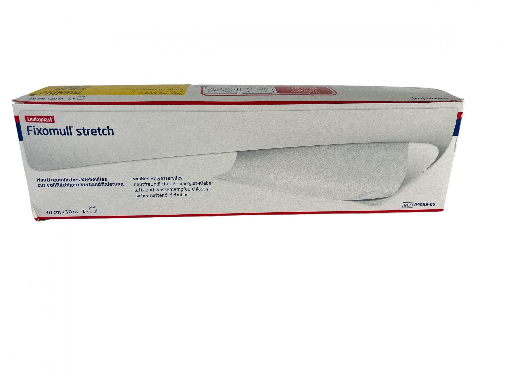 Fixomull® stretch in der Размер 30 cm x 10 m ist ein großflächiges, selbstklebendes Verbandmaterial, das sich ideal zur Fixierung von Wundauflagen oder Verbänden an großen Körperstellen eignet. Es bietet hohe Elastizität und Anpassungsfähigkeit, ohne die Bewegungsfreiheit einzuschränken.