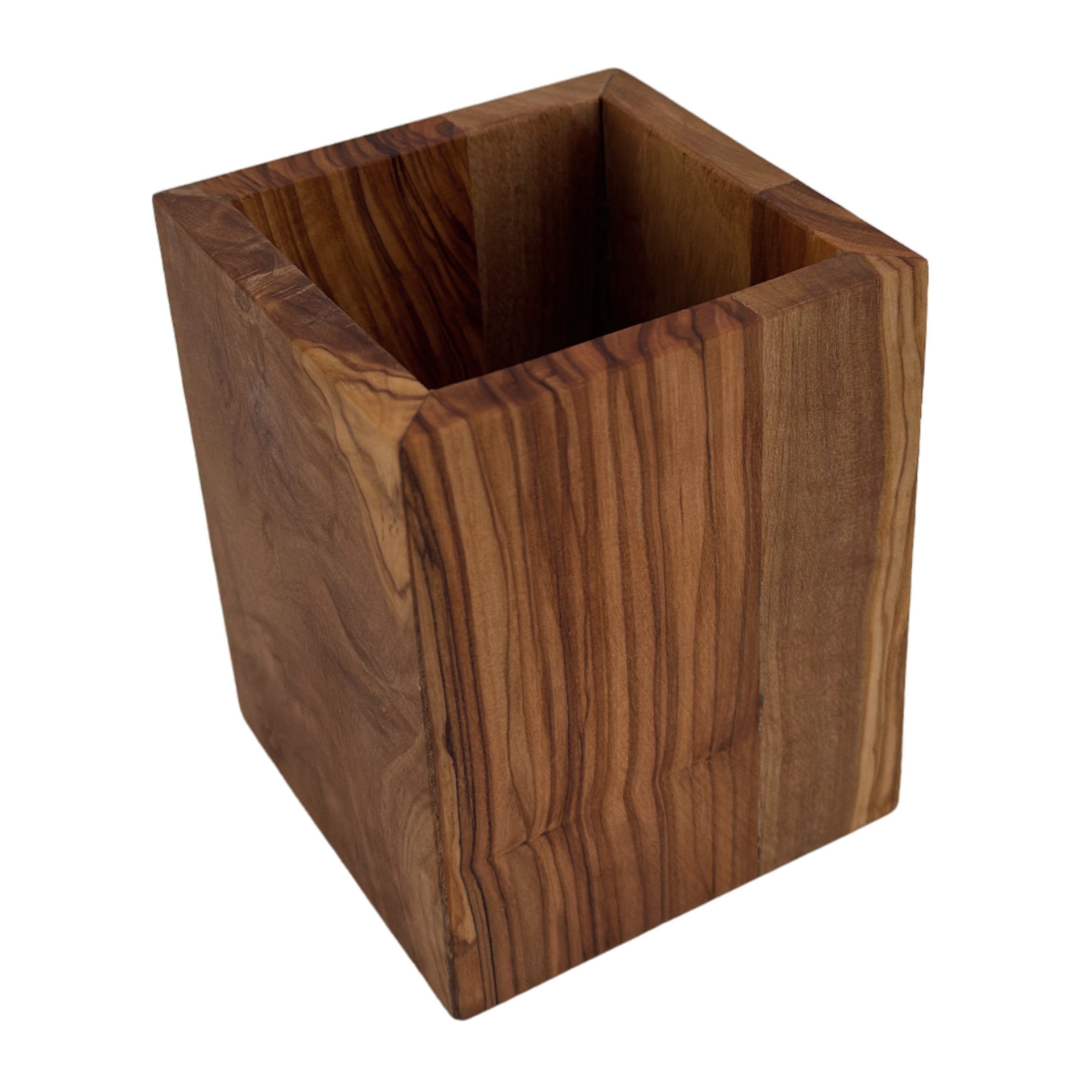 Der Stiftehalter "My Office" ist ein eckiger Becher aus hochwertigem Olivenholz, der in Handarbeit gefertigt wird. Jedes Stück ist ein einzigartiges Unikat, weshalb Form, Größe, Maserung und Farbe von der Abbildung abweichen können. Mit seinem zeitlosen Design eignet sich der Becher hervorragend als Stifthalter oder zur Aufbewahrung von kleinen Utensilien. Der schöne Becher ist vielseitig einsetzbar und verleiht jedem Tisch eine warme, mediterrane Atmosphäre. Produktmaße (ca.): Длина: 8 cm x Breite: 8 cm x Höhe: 10 cm. Lieferumfang: 1 x Becher aus Olivenholz. Hinweis: Da es sich um ein handgefertigtes Unikat handelt, können Maße, Maserung und Farbe von der Abbildung abweichen.