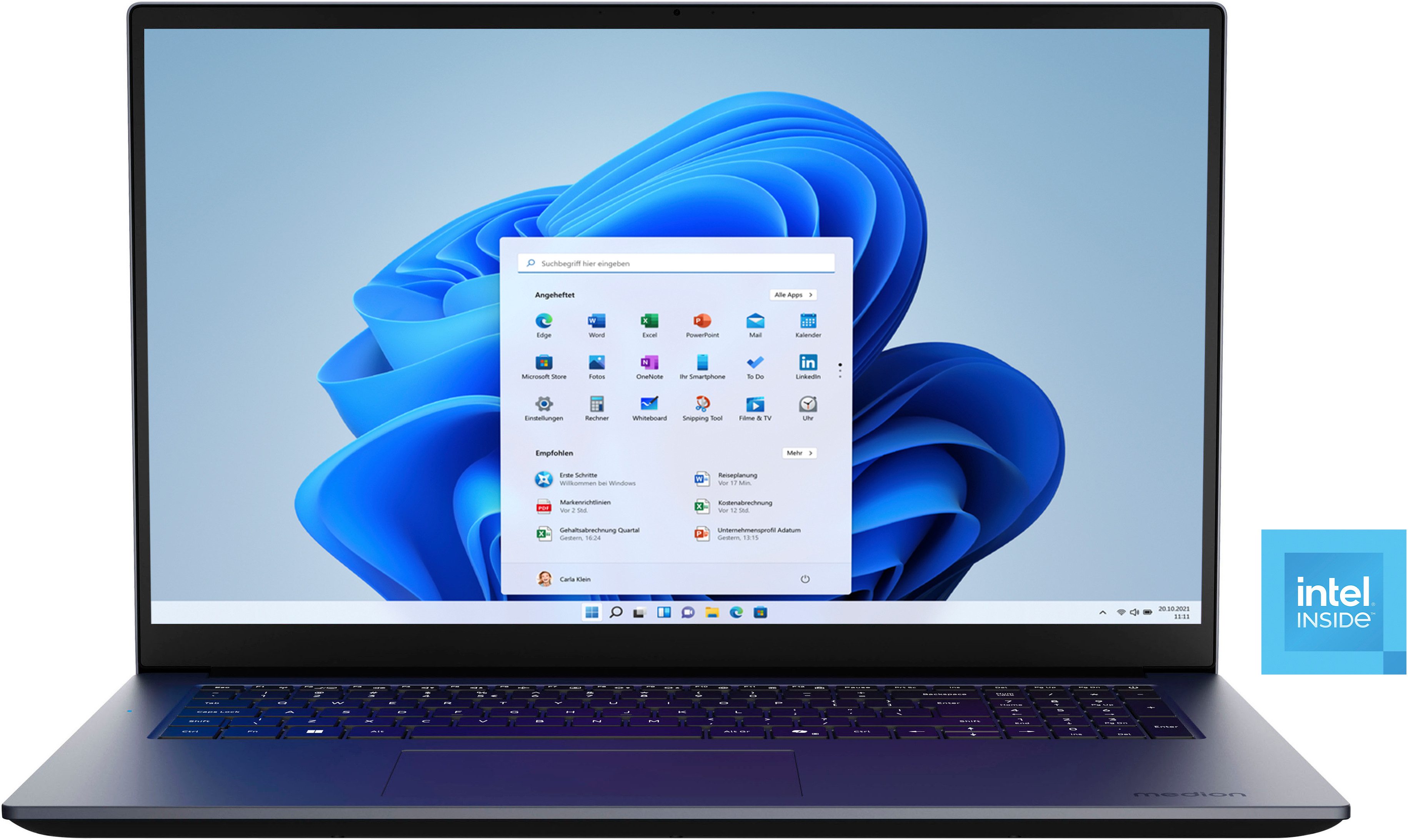 Das Notebook Avantum 17 E1e wurde von Medion® hergestellt. Auf dem großzügigen 17,3 Zoll-Bildschirm lassen sich Fotos, Filme und Anwendungen in hochauflösender Qualität genießen. Microsoft Windows 11 Home 64-Bit ist als Betriebssystem vorinstalliert, dadurch kannst du dich direkt an deinem neuen Gerät erfreuen. Anschlussmöglichkeiten für weitere Geräte stehen dank USB- und HDMI-Schnittstelle zur Verfügung. In der Frontseite ist eine Kamera eingebaut, die du für die Video-Telefonie oder zum Aufnehmen von Fotos oder Filmen verwenden kannst. Wenn du einen Laptop suchst, der ein Betriebssystem vorinstalliert hat und über praktische Anschlussmöglichkeiten verfügt, ist dieses Modell gut für dich geeignet. Dank seines 17,3 Zoll großen Displays eignet sich der Medion®-Laptop als Alternative zum klassischen Computer auf deinem Schreibtisch. Der IPS-Bildschirm ist hilfreich, da er eine hohe Farbgenauigkeit und Detailreichtum bietet. Eine detailreiche Darstellung deiner Programme und Medien wird durch die Full HD-Auflösung mit 1920 x 1080 Pixeln erreicht. Da das Display entspiegelt ist, lässt es sich auch im Freien und bei Sonnenschein einfach ablesen.