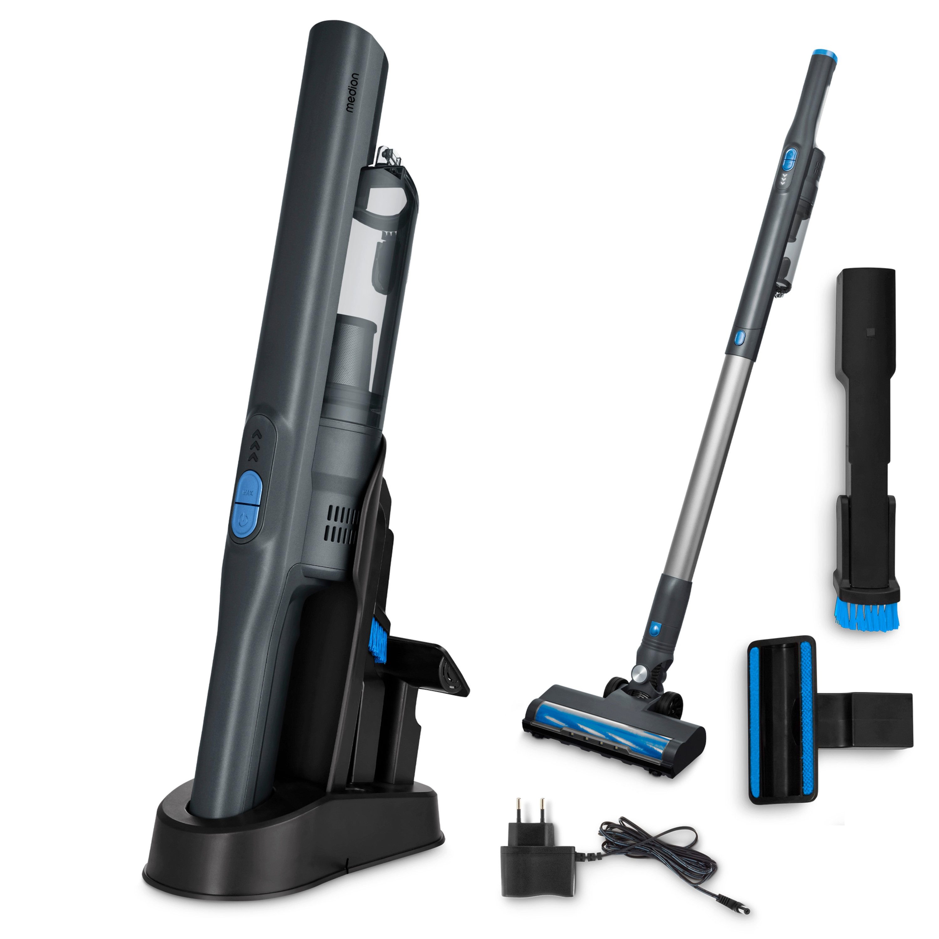 Впередe Vorteile | Flexible 2in1-Lösung für gründliche Reinigung Flexibles Zubehör für gründliche Sauberkeit Kompaktes Leichtgewicht für den schnellen Einsatz Leistungsstarker Akku mit durchdachter Ladestation |