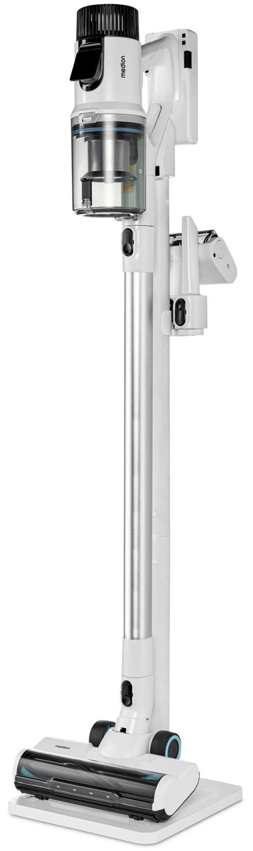 Впередe Vorteile | 26 kPa für konstante SaugkraftDurch die Zyklon-Technologie ist eine konstant starker Saugleistung garantiert. Im Behälter lässt der Luftstrom den Schmutz rotieren, sodass die Düsen nicht verstopfen. Sie profitieren von einer zuverlässigen Reinigung ohne Einbußen. 2in1 Funktion: Wischen und Saugen Der aufsetzbare Wassertank macht aus dem Akku-Staubsauger ein echtes Multitalent: gleichzeitig Saugen und Wischen ist für ab jetzt kein Problem mehr. Einfach den Wassertank mit Wischtuch aufsetzen und los geht’s! Ausdauernder AkkuMit der Betriebsdauer von bis zu 60 Minuten können Sie Wohnräume großzügig reinigen und nach dem Einsatz über die Wandhalterungzügig wieder aufladen. Der Akku des Staubsaugers ist zusätzlich auch wechselbar. Kabellos und flexibel einsetzbarDer kabellose MEDION Zyklon-Staubsauger mit cleverer 2in1-Funktionalität verschafft Ihnen beim Staubsaugen zusätzliche Flexibilität: er lässt sich nämlich als Boden- und als Handstaubsauger einsetzen. Außerdem wird er durch die mitgelieferten Wechseldüsen und -bürste noch vielfältiger nutzbar. LED-Touch-DisplayÜber das LED-Touch-Display steuerst Du die Saugleistung indem Du zwischen drei verschiedenen Leistungsstufen wählst: Auto, Eco oder Max. Außerdem hast du den Akkustand deines Staubsaugers immer im Blick. Praktischer StaubbehälterDer Behälter des MEDION Staubsaugers fasst bis zu 700 ml Staub und Dreck und ist dabei ganz leicht und hygienisch zu entleeren. Mit dem HEPA-H13 Filter werden feine Partikel außerdem optimal gefiltert. Staubsensor und motorisierte BürsteDie motorisierte Bürste des Staubsaugers ist mit praktischen LEDs ausgestattet, die das präzise Reinigen erleichtert. Zusätzlich wird durch den Staubsensor die Saugkraft automatisch angepasst und Dein Staubsauger so noch effizienter. |