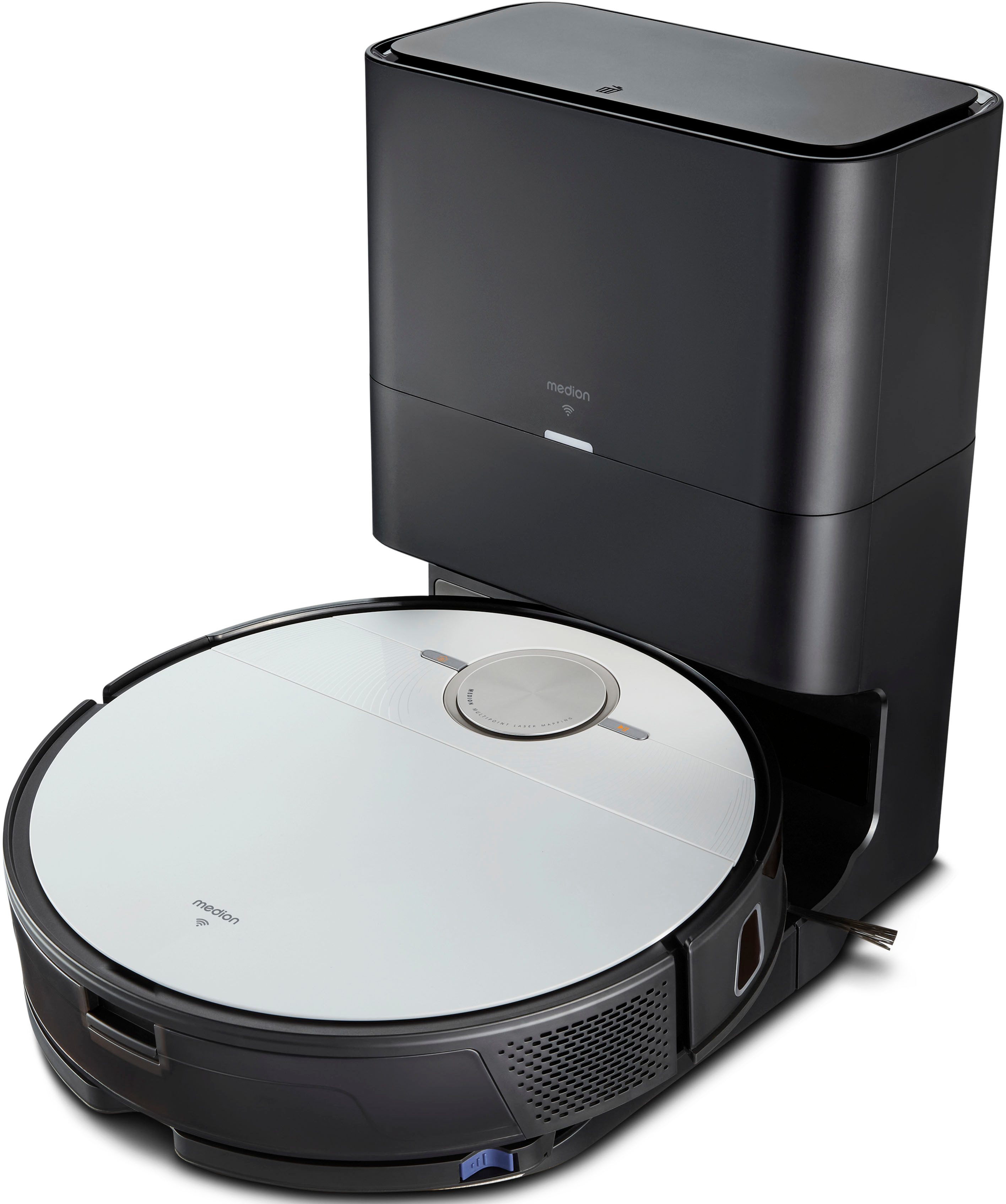 Bodenreinigung leichtgemacht Der MEDION X50 SW ist ein smarter 2-in-1-Haushaltshelfer, der Ihre Böden sowohl saugt als auch wischt. Er bewegt sich mit seiner 360°-Lasernavigation absolut sicher durch Ihr Zuhause und kartiert Ihre Wohnung maßstabsgetreu. Die optimierte Lasertechnologie hilft ihm dabei sauber an Wänden entlang zu fahren und Hindernissen präzise auszuweichen. Durch den eingebetteten Laserturm und die besonders geringe Bauhöhe von nur 8,5 Zentimetern passt er zudem unter die meisten Möbel und reinigt wirklich jeden Winkel. Der Clou: Wenn der Roboter für eine Ladepause selbstständig in seine Station zurückkehrt, wird auch der Staubbehälter vollautomatisch geleert. So geht smarter Hausputz!